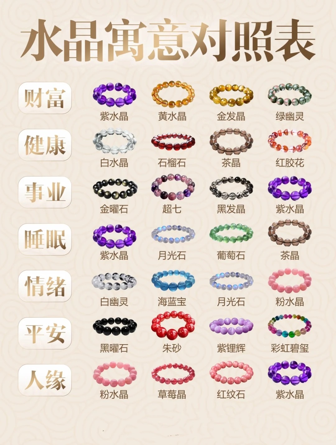 ★【材质】黑晶超七,虎眼,紫水晶,金发晶,绿幽灵,白水晶,银曜石,黄水晶跑环