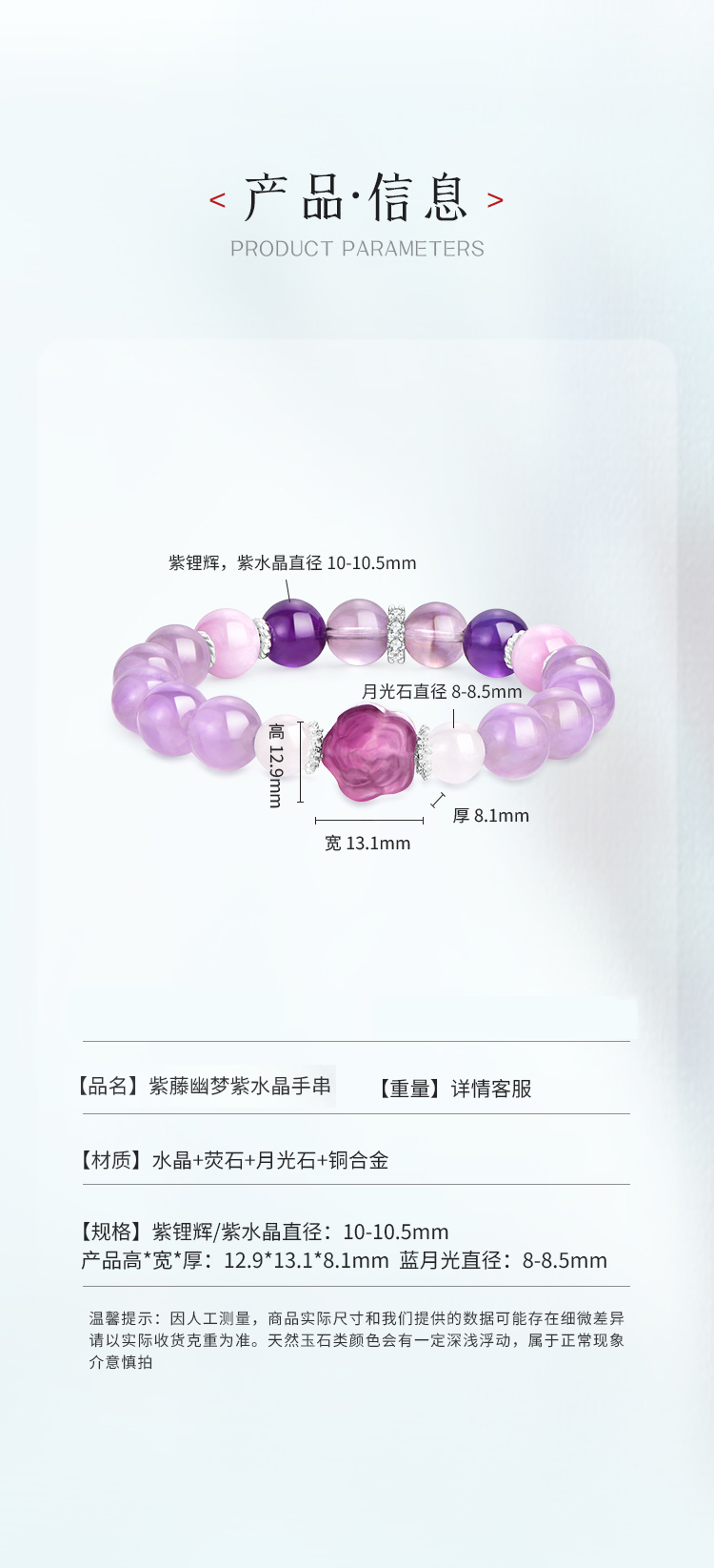 ★【材质】紫锂辉,紫水晶,蓝月光,萤石花