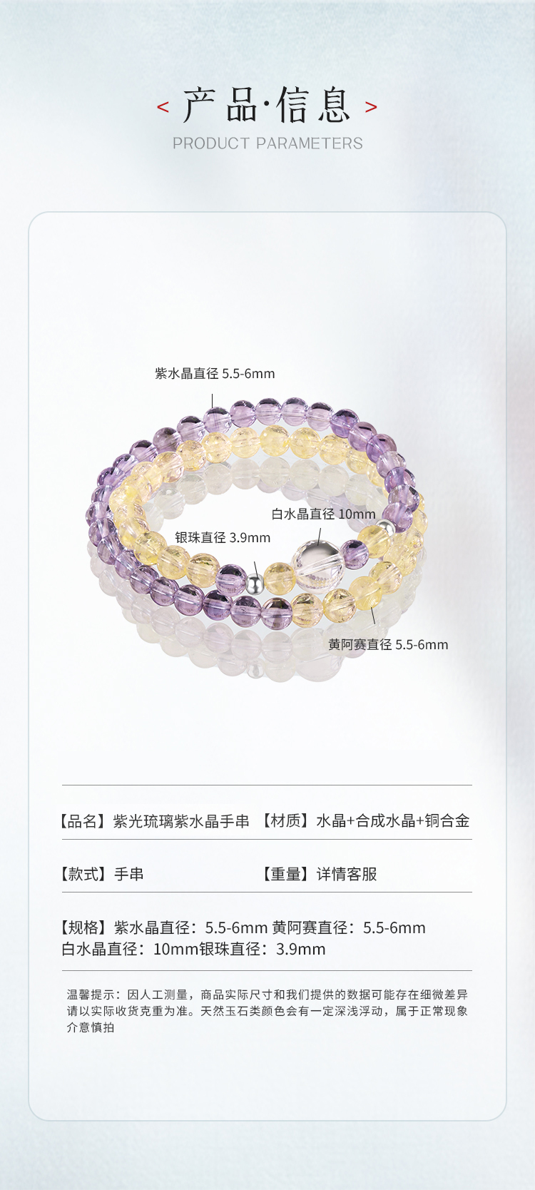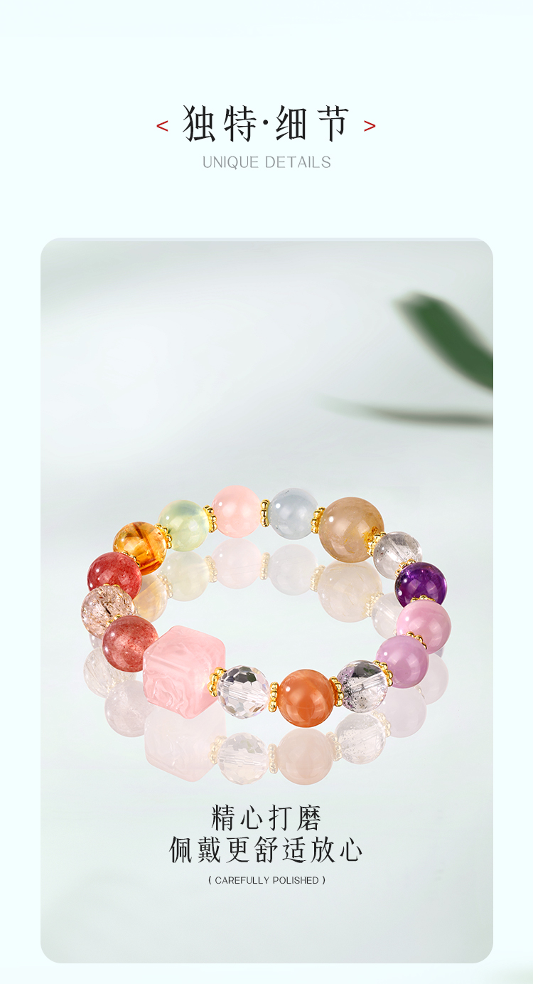 ★【材质】水晶+石英质玉(草莓晶)+葡萄石+海蓝宝+铜合金