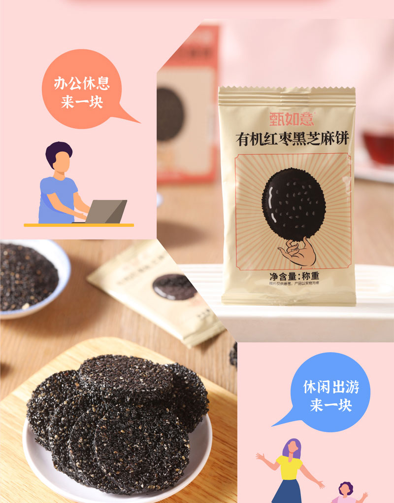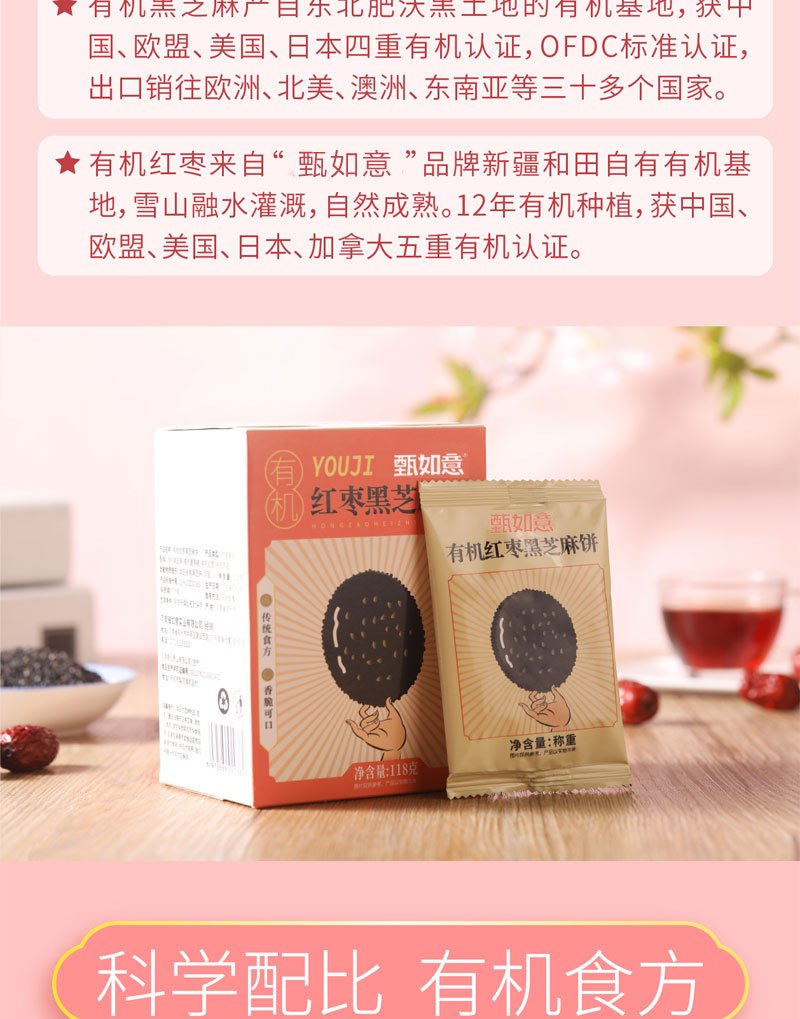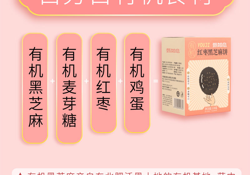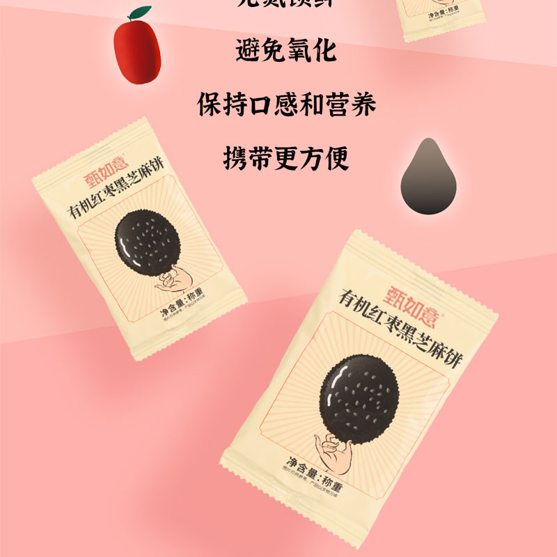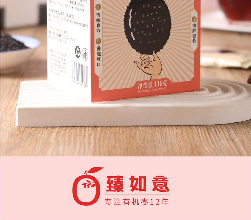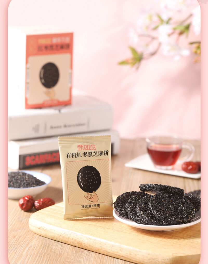 甄如意有机红枣黑芝麻饼118g 无添加含钙薄脆老人儿童休闲营养零食小吃