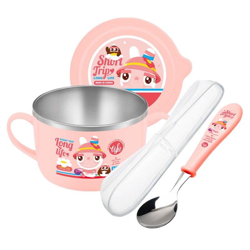 TISOü 妙趣 EINAR 不锈钢儿童餐具热力四件套 粉