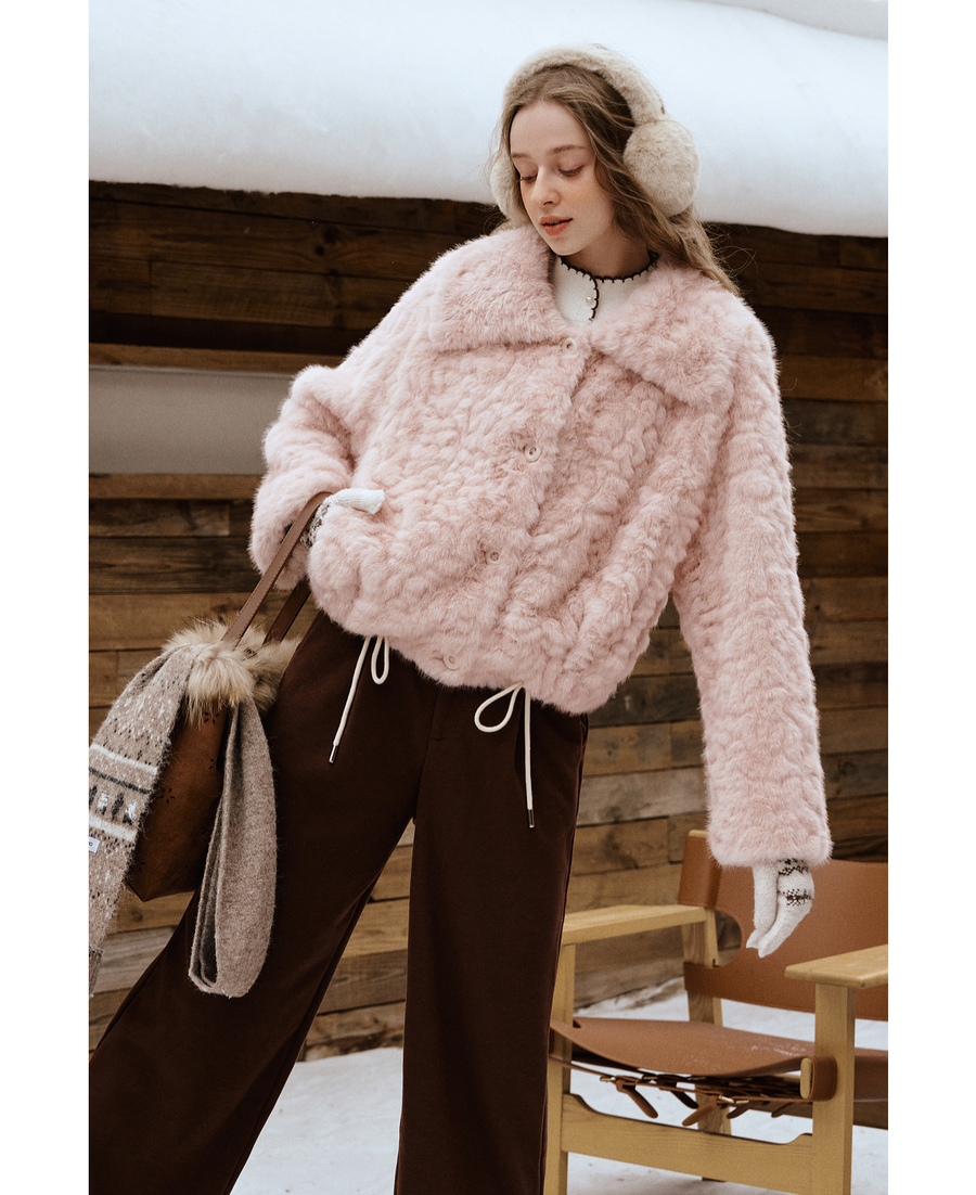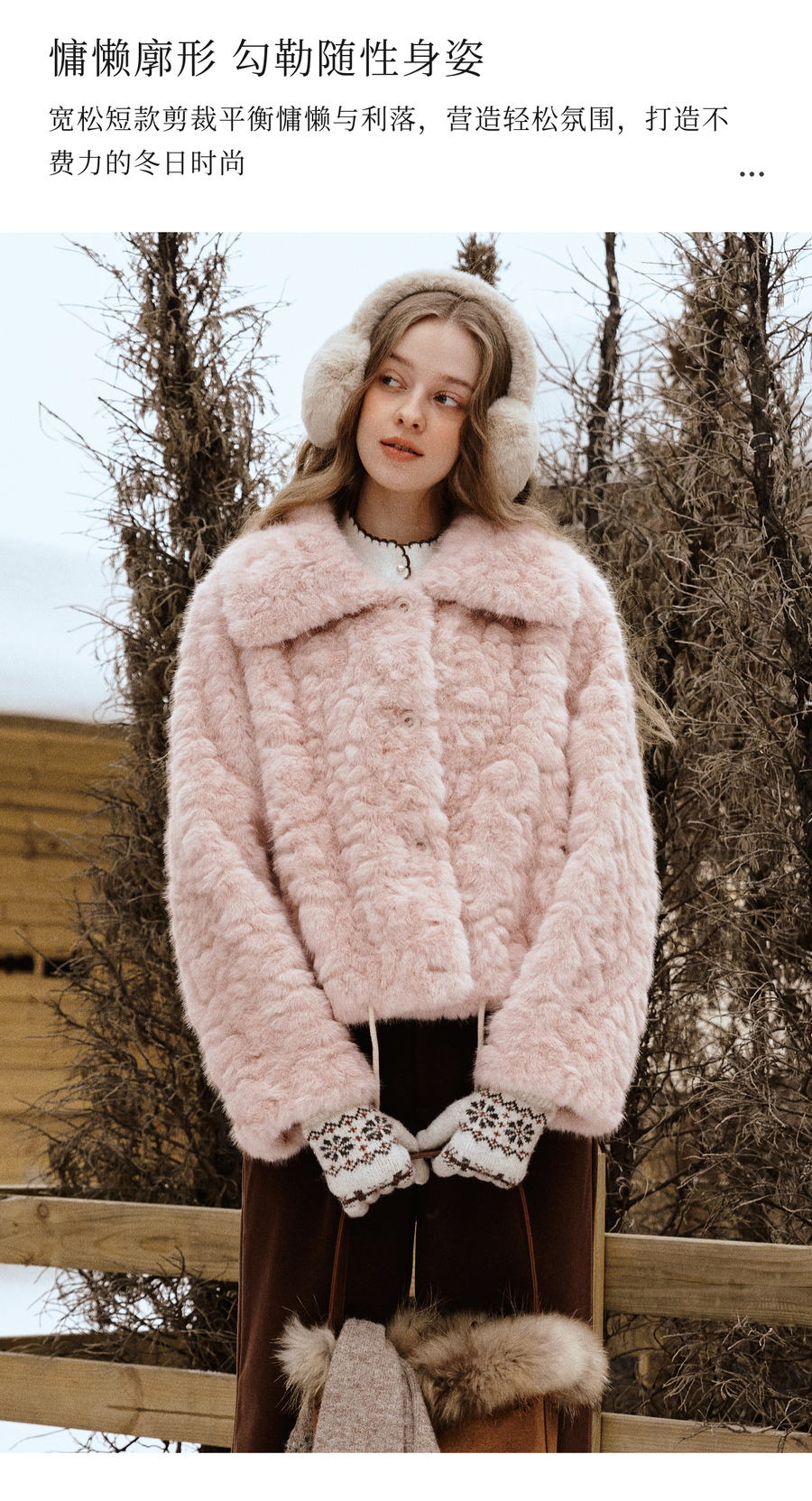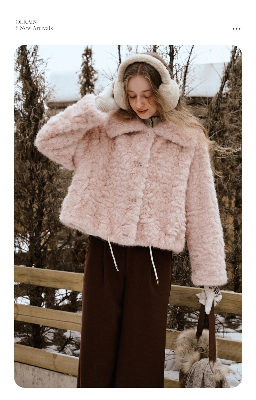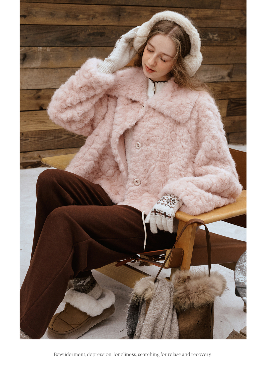 OLrain欧芮儿2025新款女冬季大翻领仿皮毛一体环保皮草短款外套