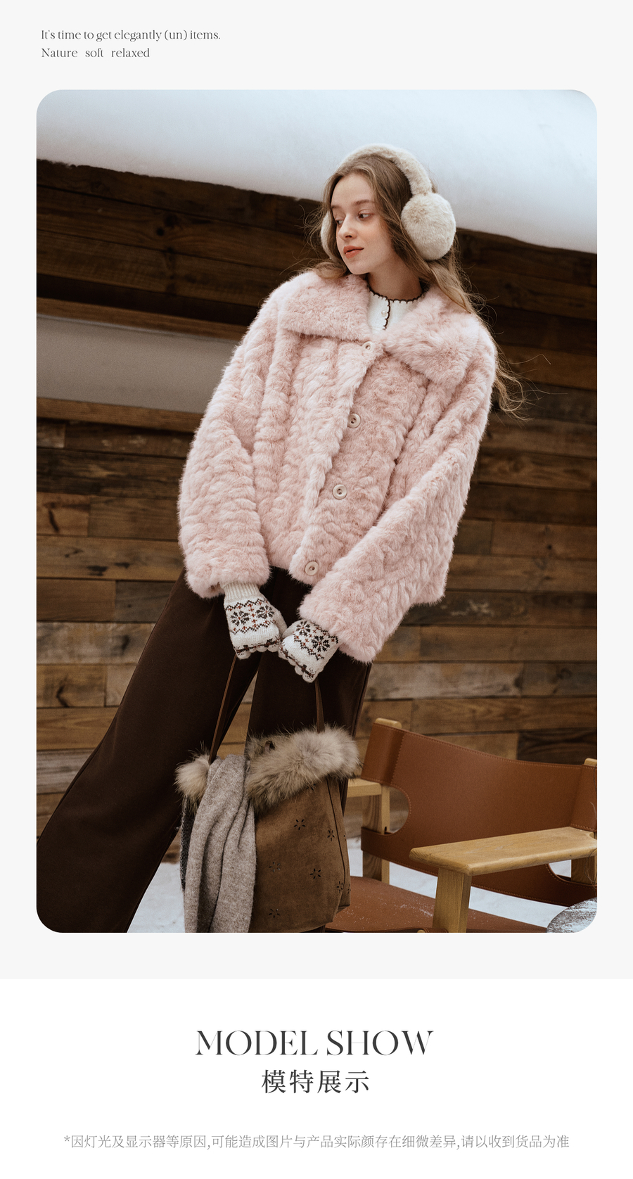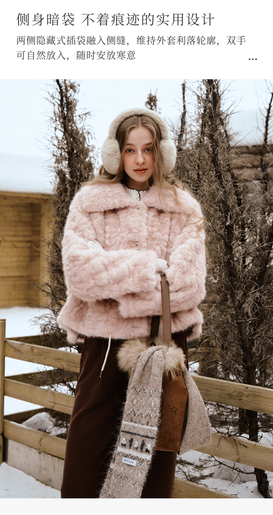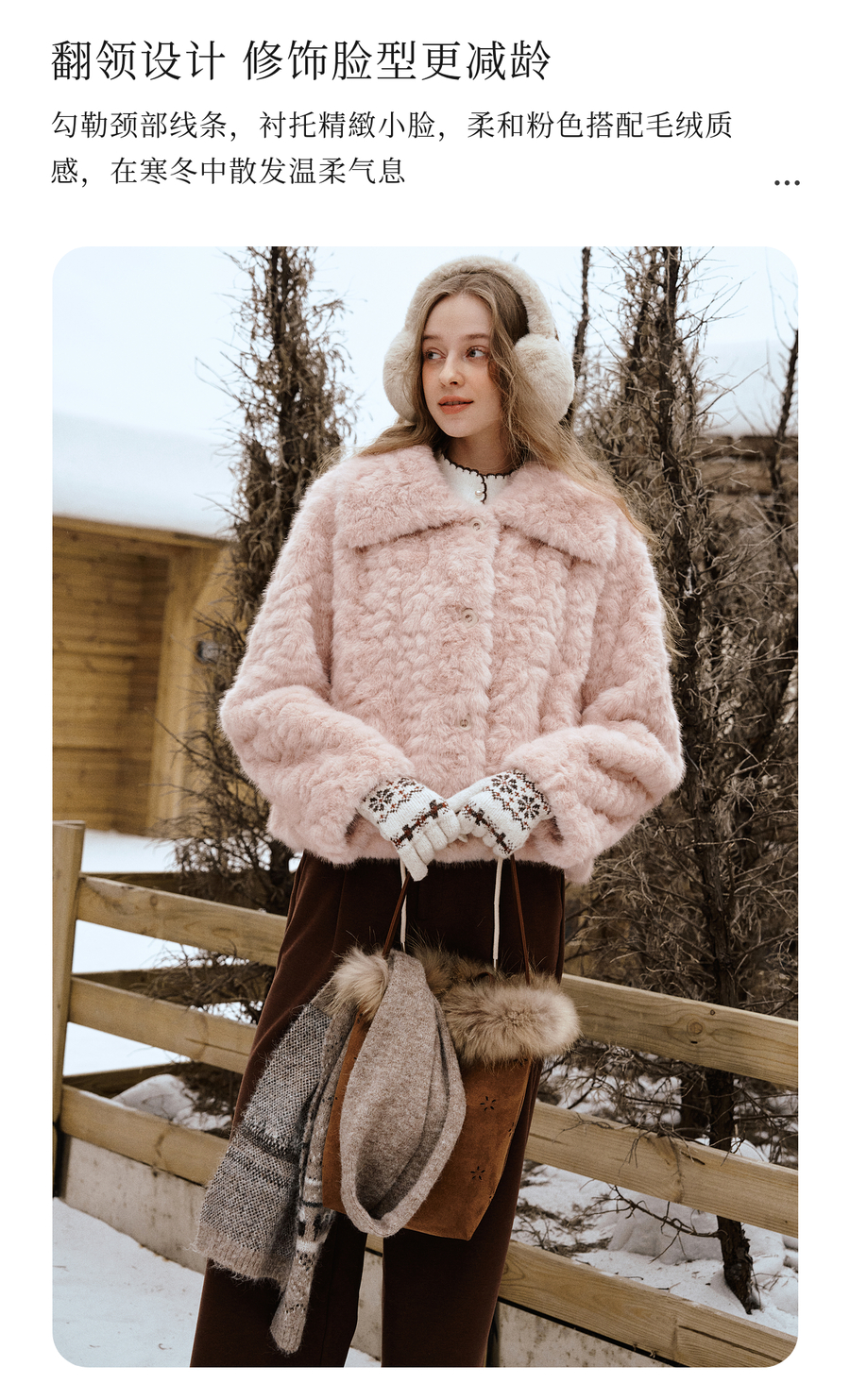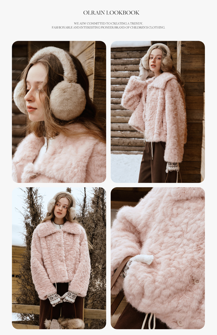 OLrain欧芮儿2025新款女冬季大翻领仿皮毛一体环保皮草短款外套