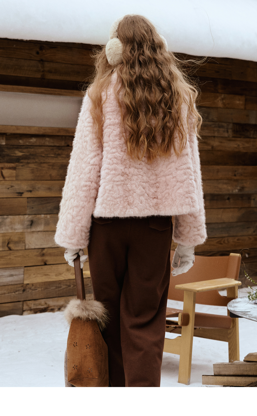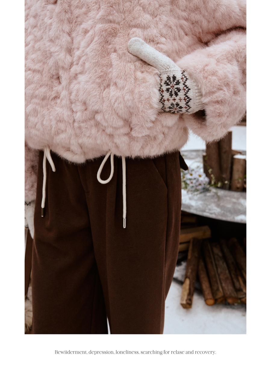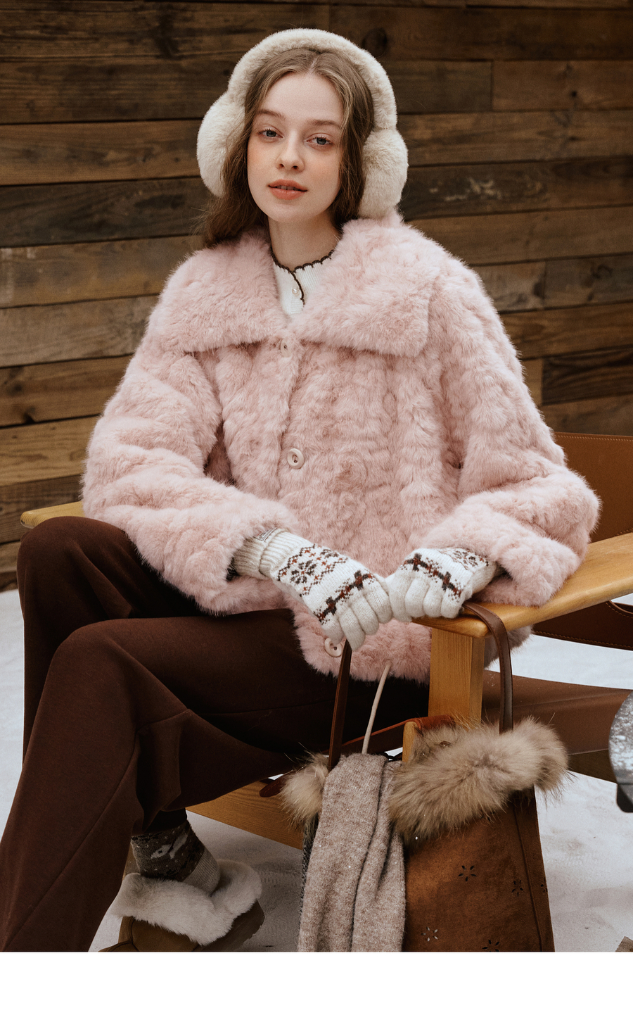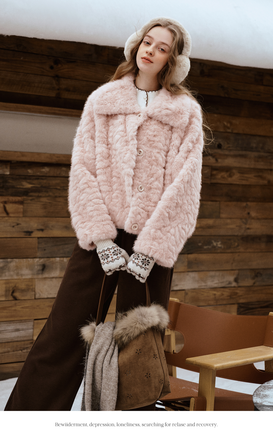 OLrain欧芮儿2025新款女冬季大翻领仿皮毛一体环保皮草短款外套