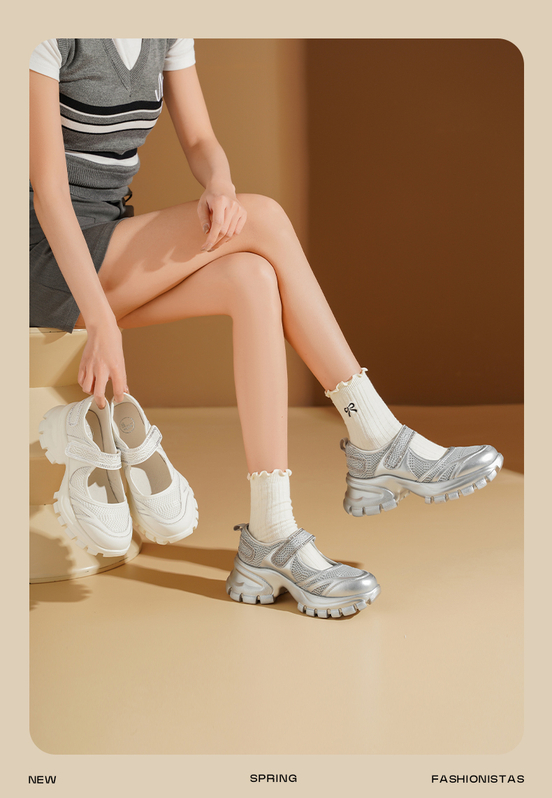 Safiya/索菲娅2025增高休闲烫钻一字带松糕厚底玛丽珍鞋SFD1111191