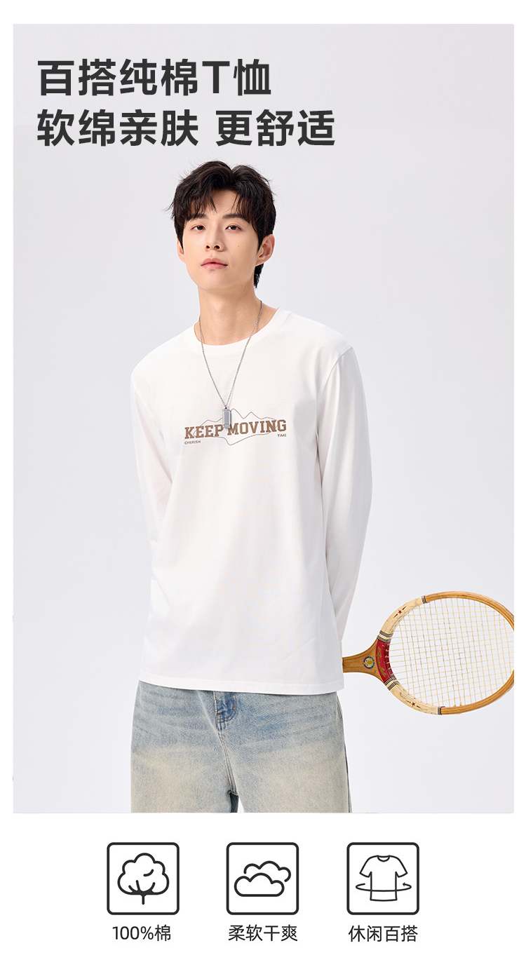 25秋款【棉100%】长袖T恤校园通勤舒适百搭男士打底衫上衣K&C