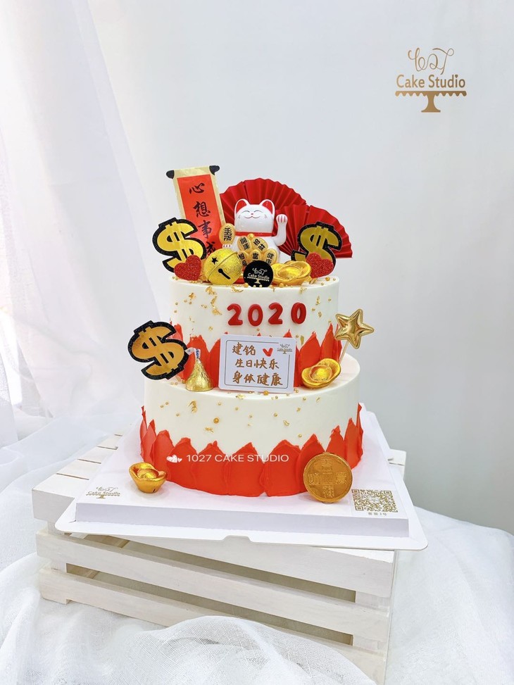 1027CAKE| 双层招财猫主题 开业/领导/长辈款式