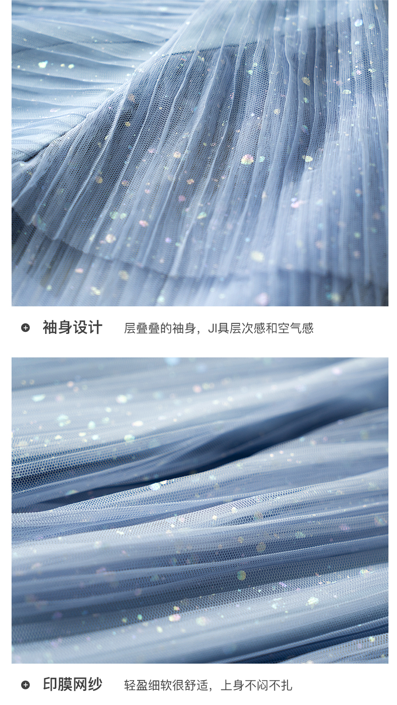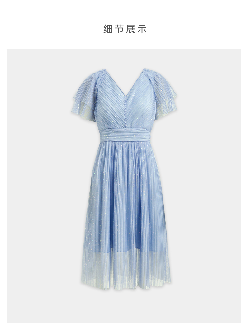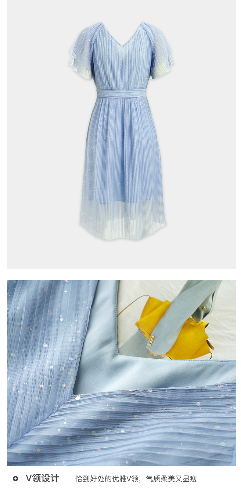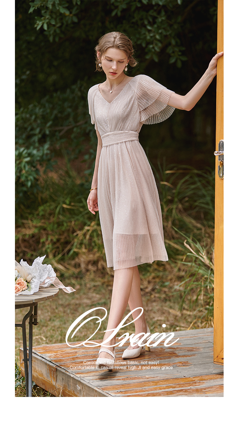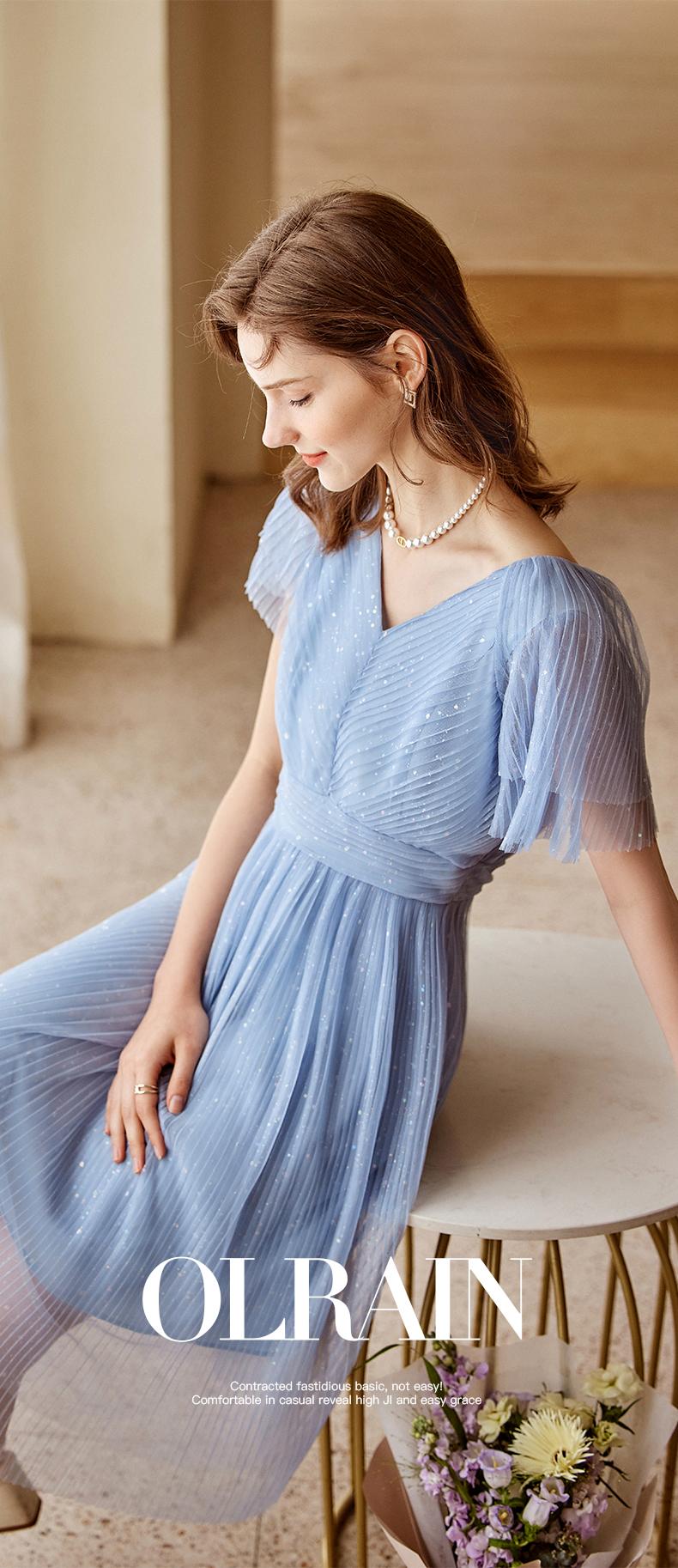 欧芮儿V领网纱连衣裙2021新款收腰显瘦优雅气质时髦超仙裙子