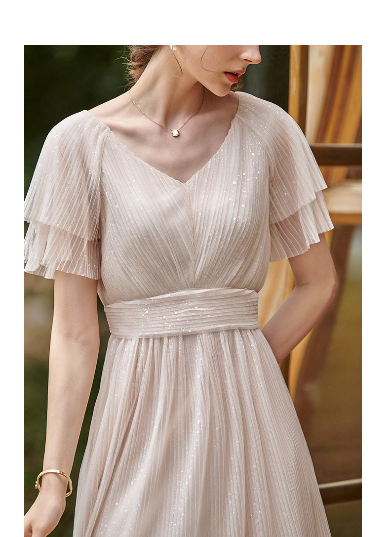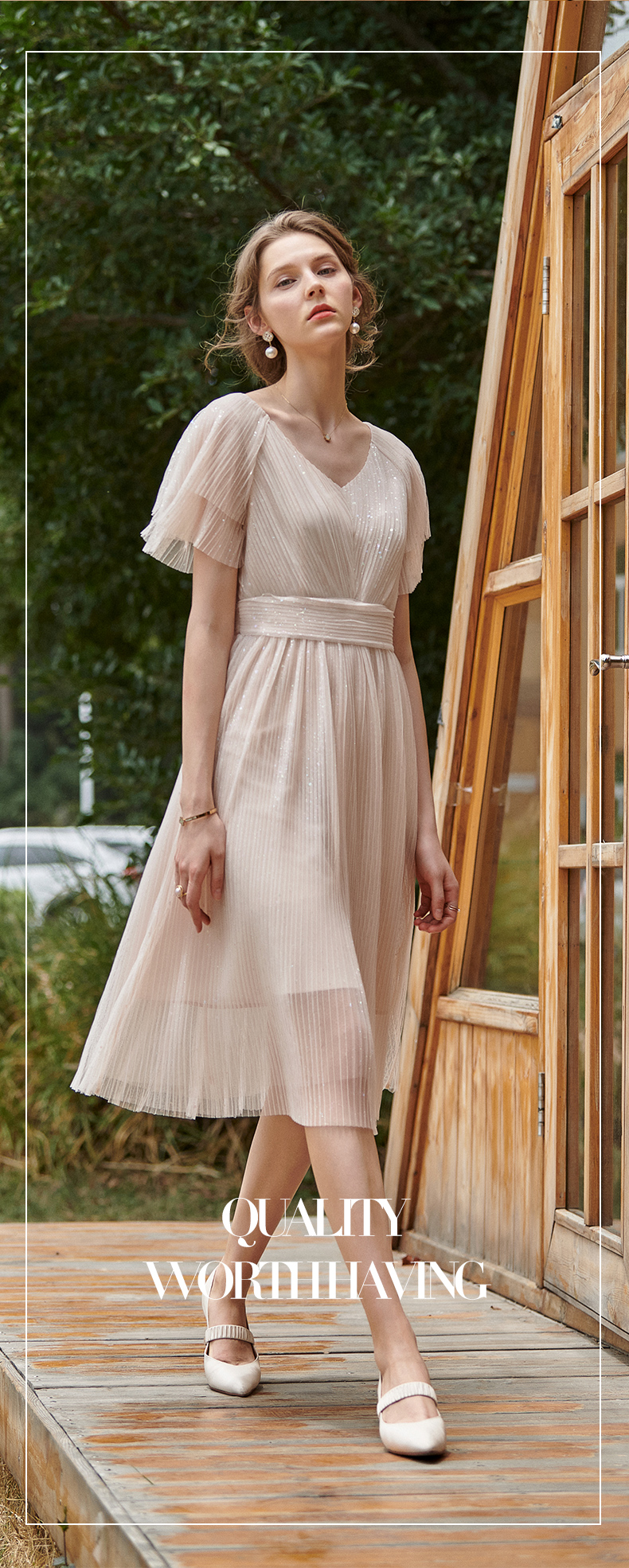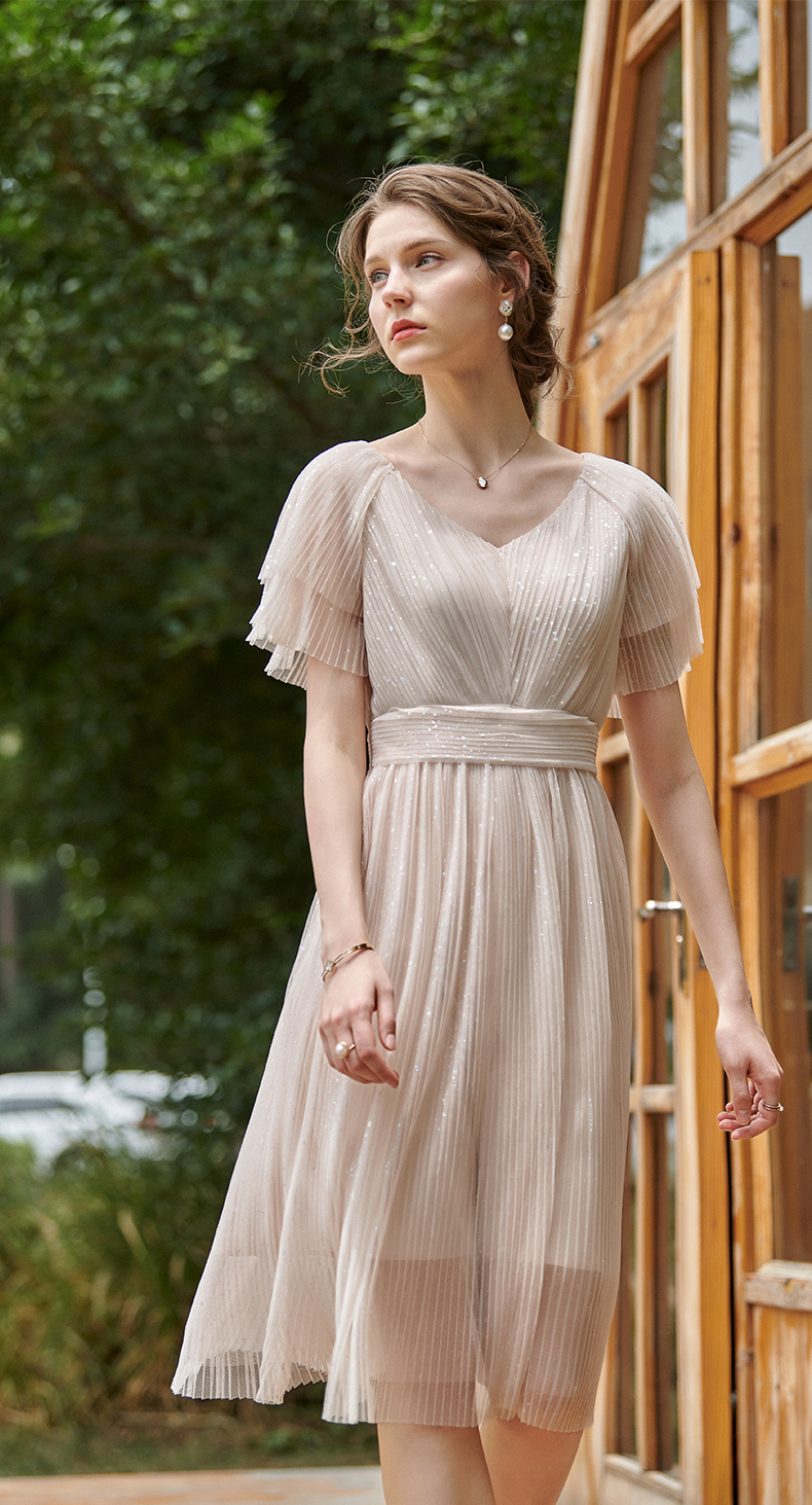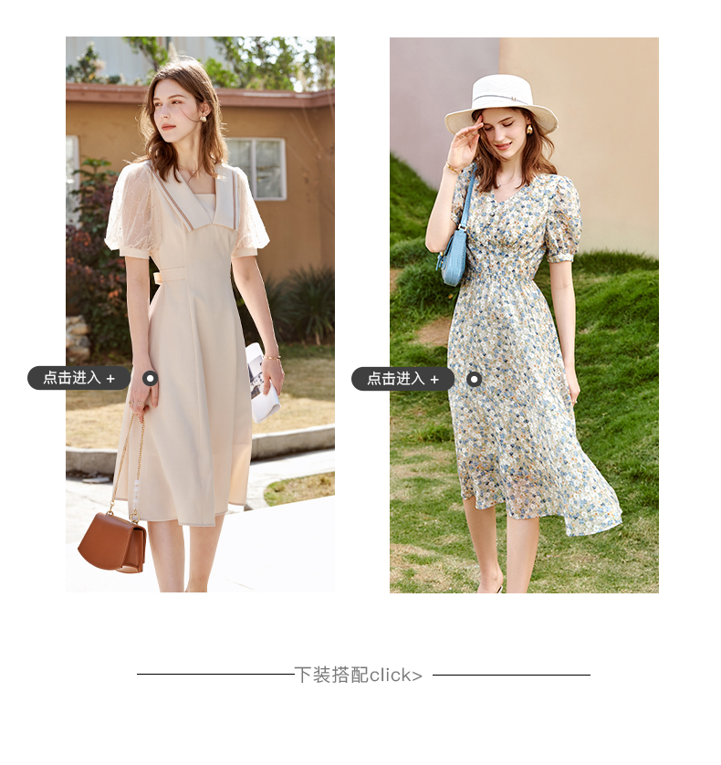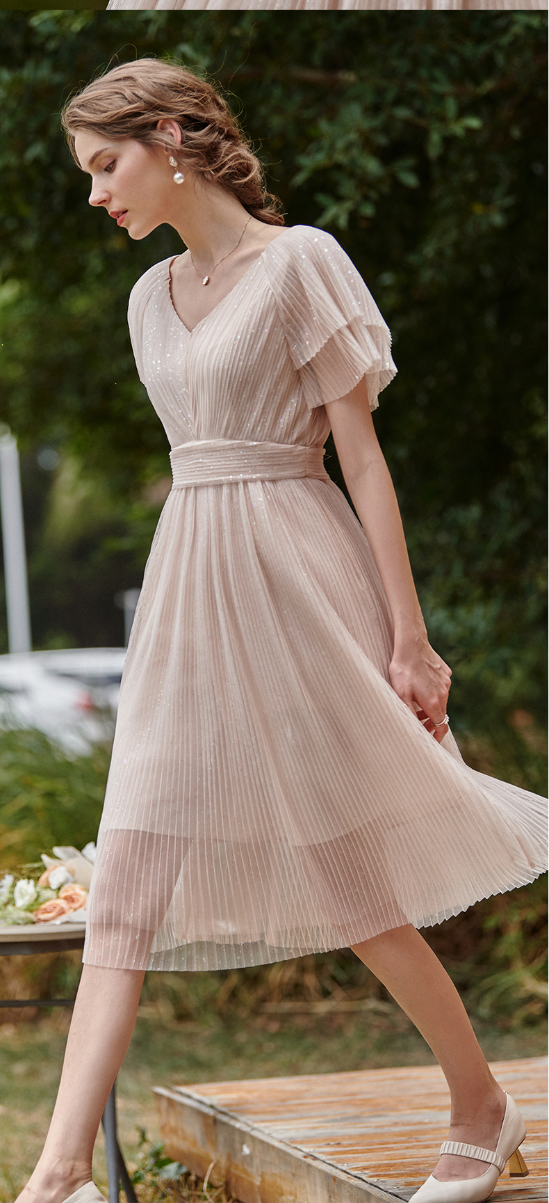 欧芮儿V领网纱连衣裙2021新款收腰显瘦优雅气质时髦超仙裙子