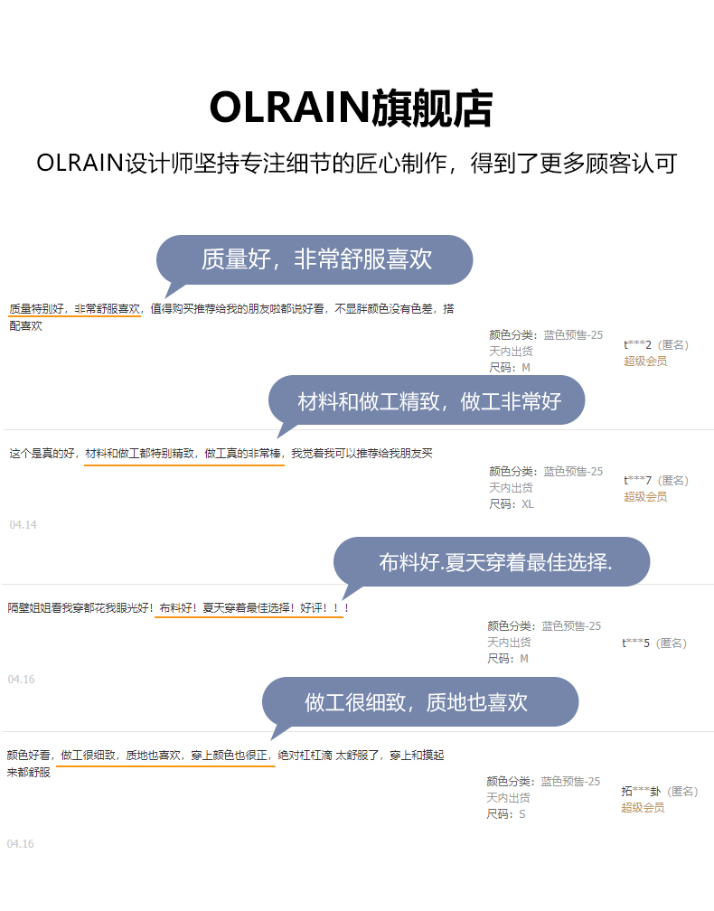 “精致”是欧芮儿olrain品牌文化的核心,欧芮儿认为,精致的女人,不但要外在动人,更要内在迷人,内外兼修,有魅力、有气质、有内涵,自信而不自傲,优雅而不矫揉,自有万种风情而不轻浮,更不故作矜持。