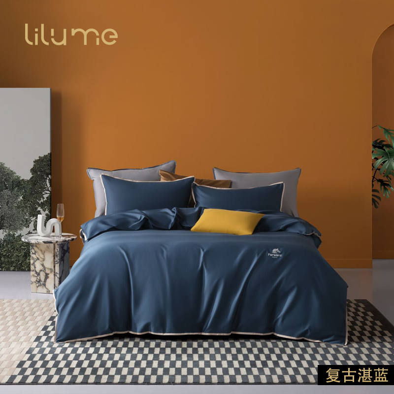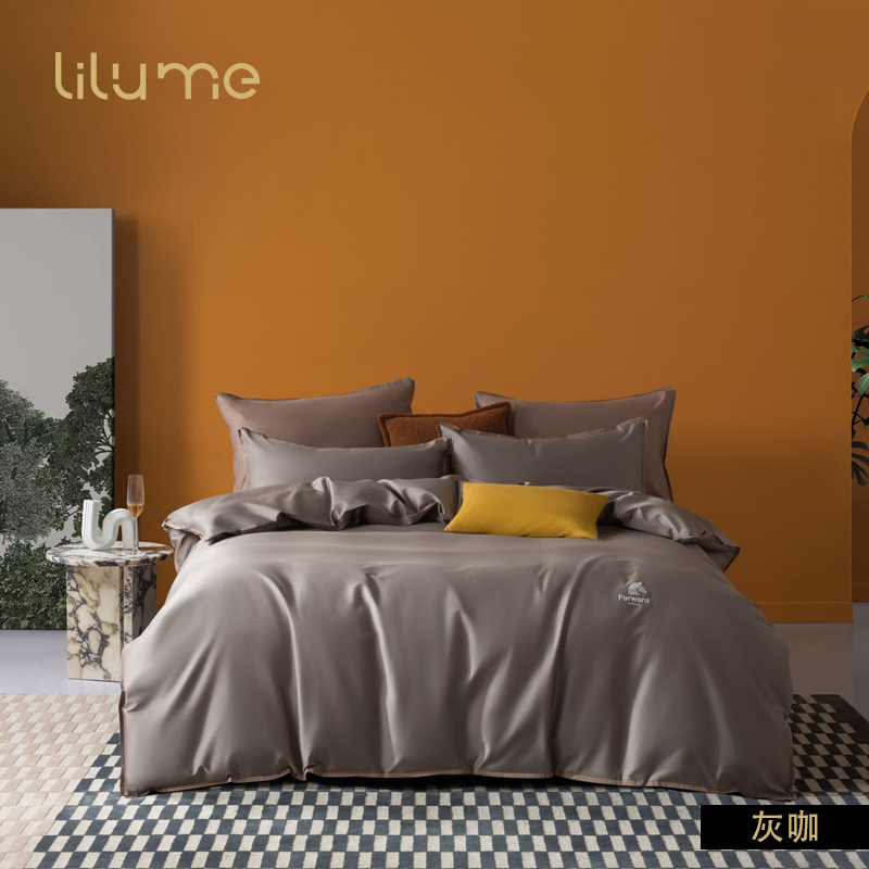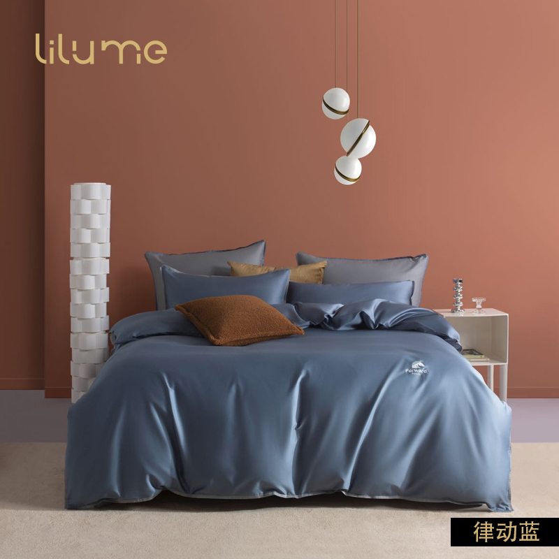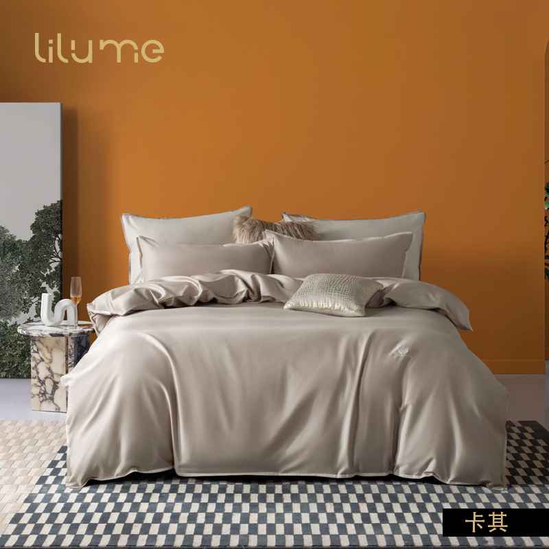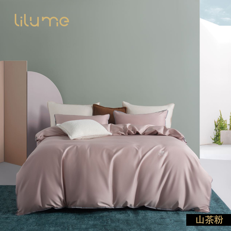 利路米新品60S新疆长绒棉贡缎文艺风纯色四件套山茶粉