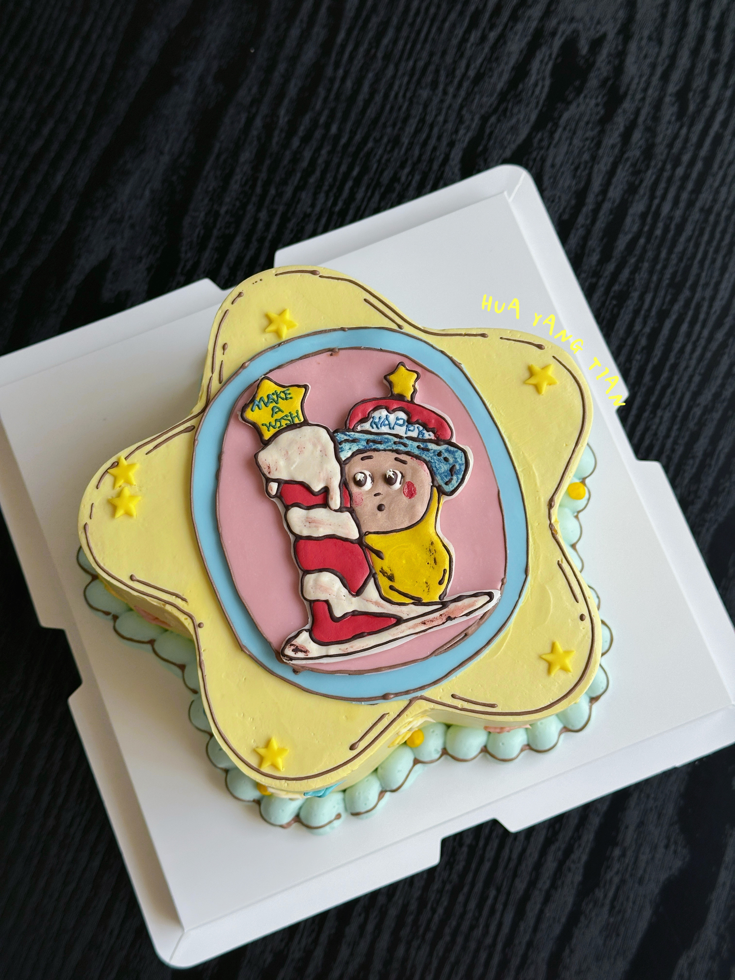 *蛋糕表面星星人部分为翻糖+手绘