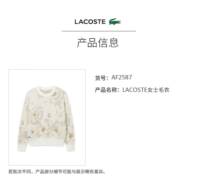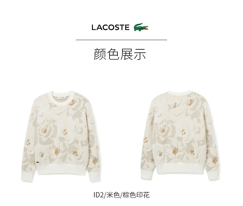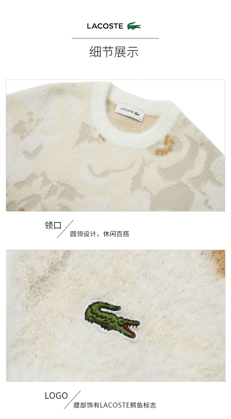 Lacoste法国鳄鱼女装新款时尚休闲舒适印花圆领毛衣AF2587-10