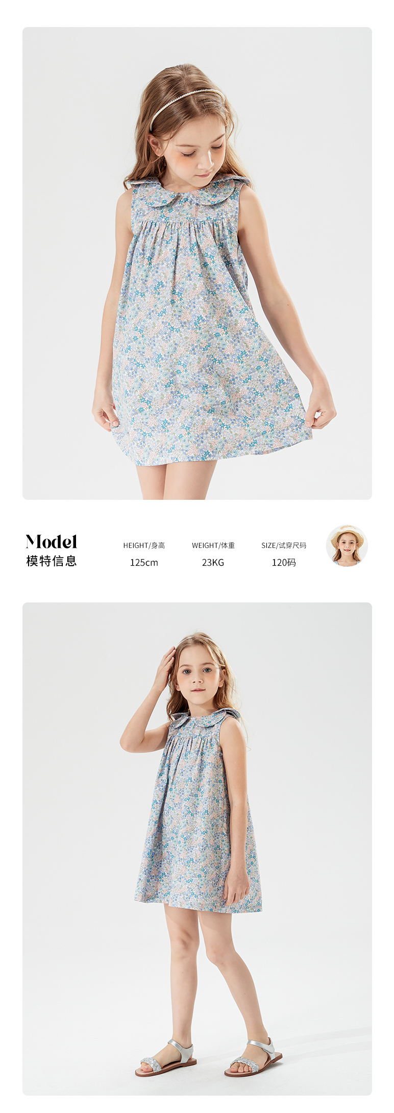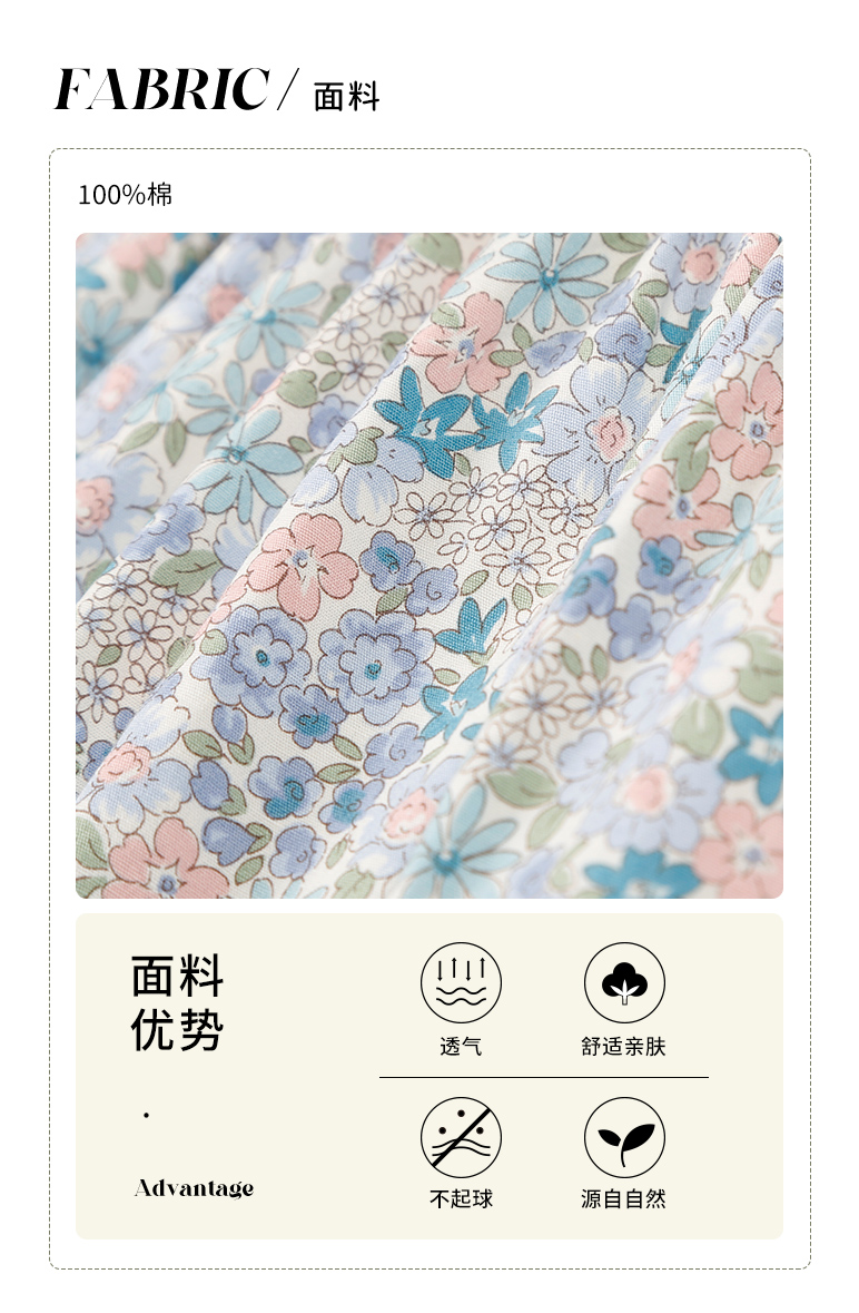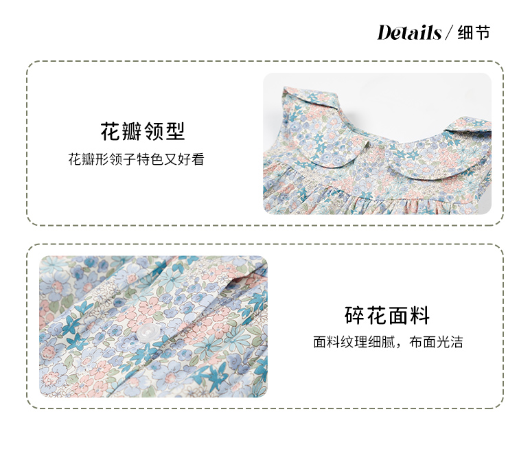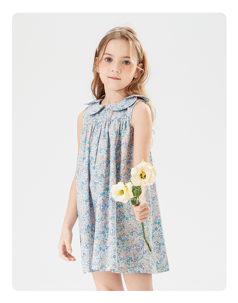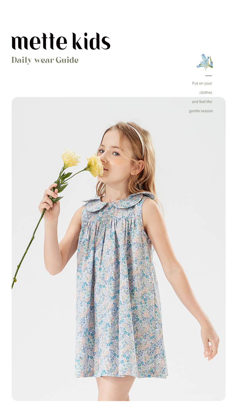 mettekids儿童裙子女童连衣裙夏季中大童洋气碎花纯棉娃娃领夏装