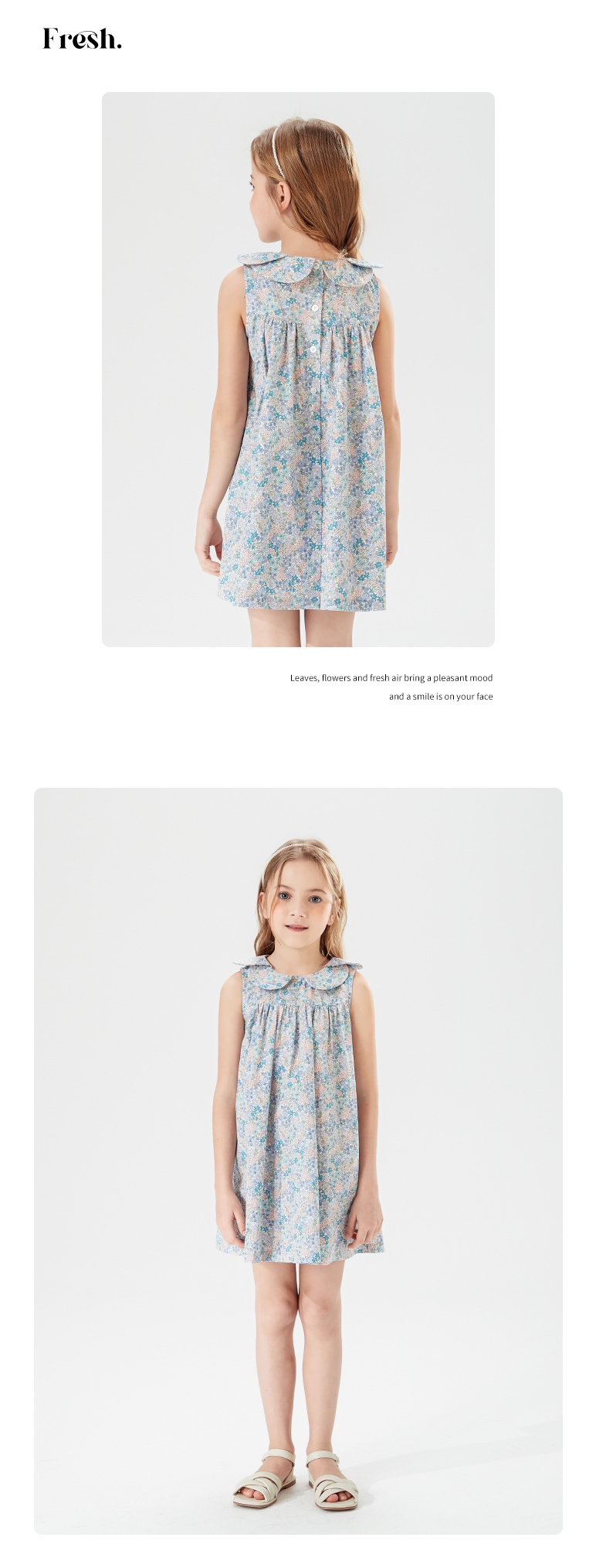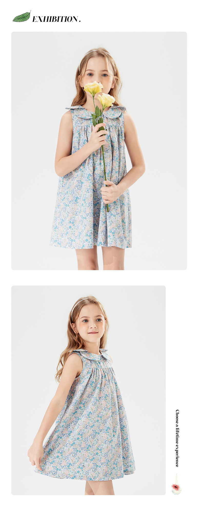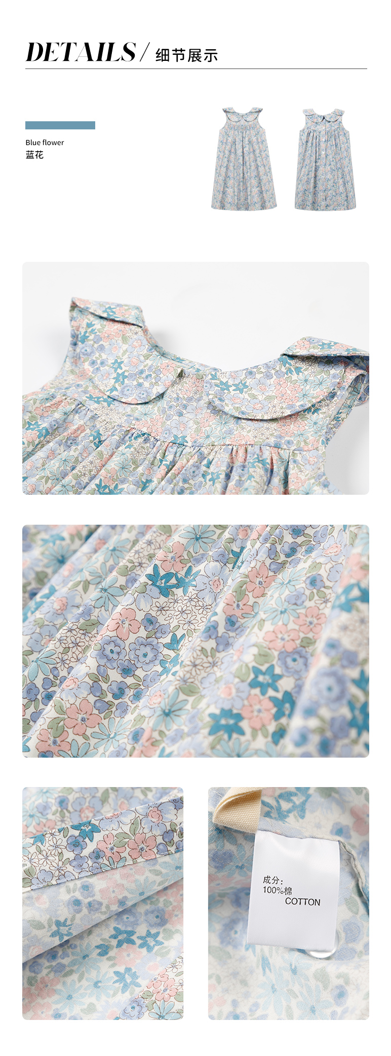 mettekids儿童裙子女童连衣裙夏季中大童洋气碎花纯棉娃娃领夏装