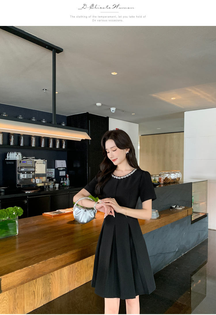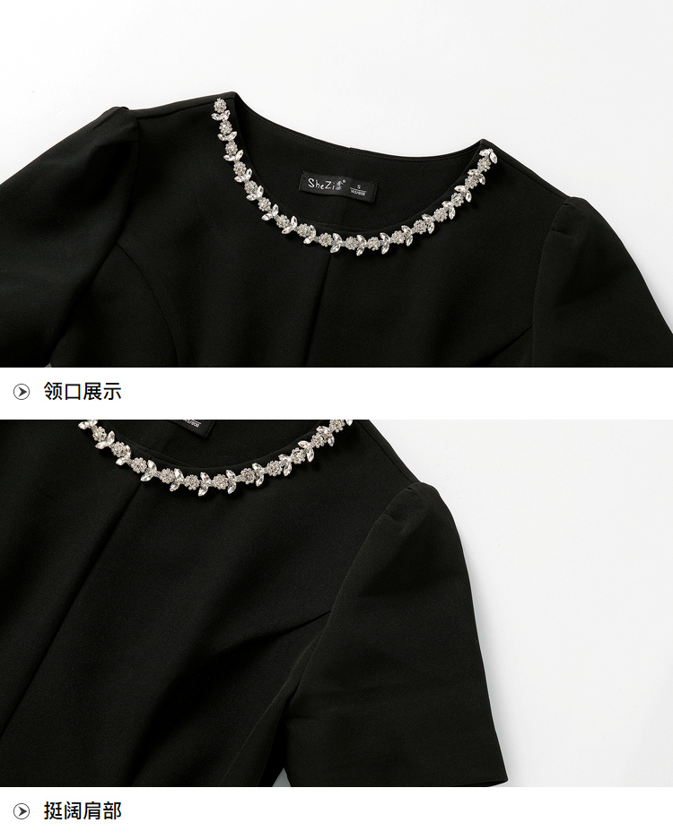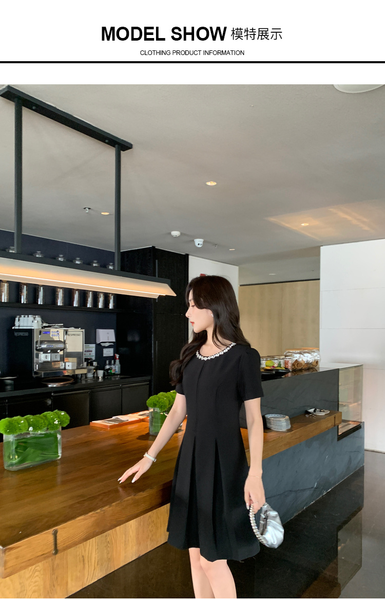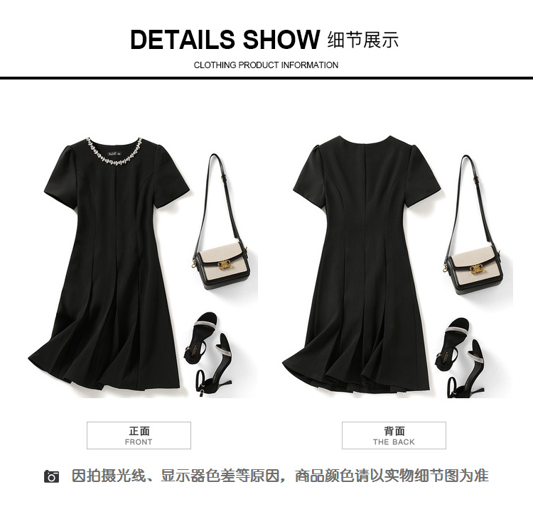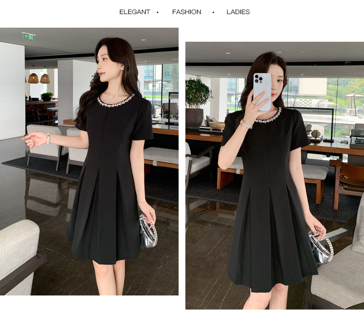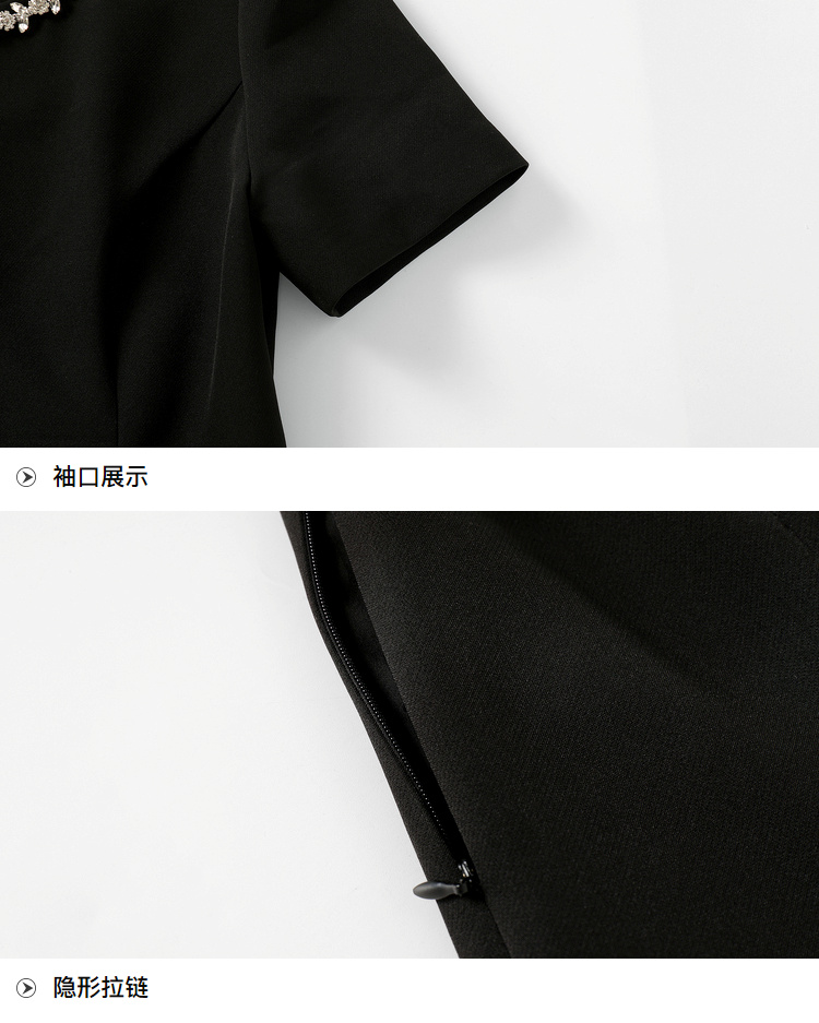 【清仓超15天不保价】[奢姿轻奢系列]圆领钻链连衣裙大码女装夏季新款胖妹妹优雅裙子8942890074