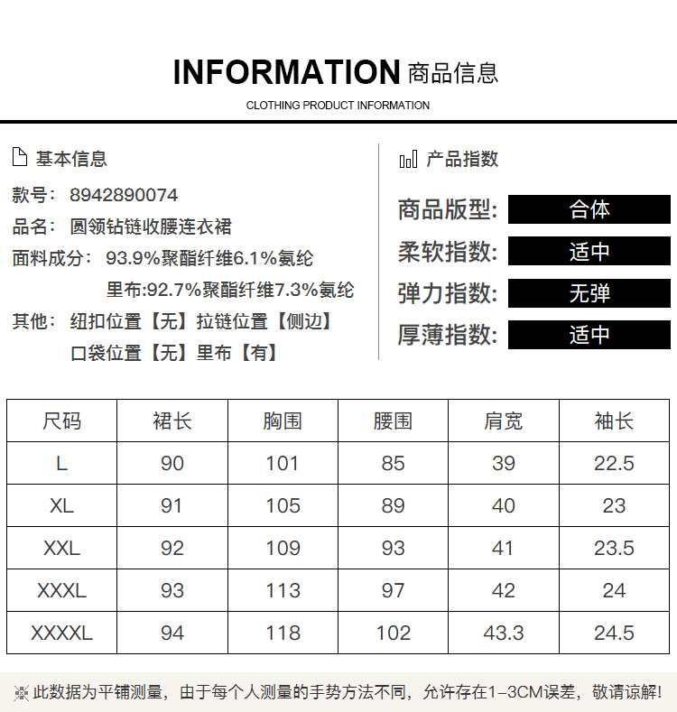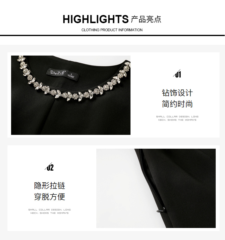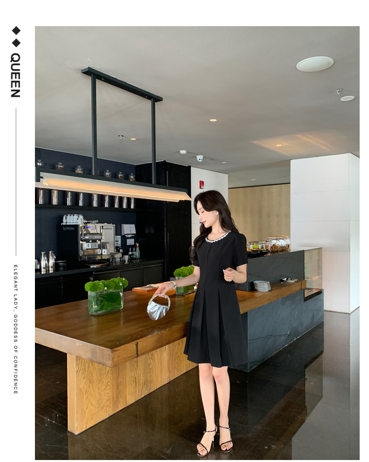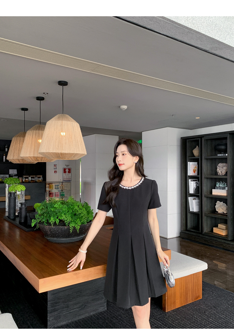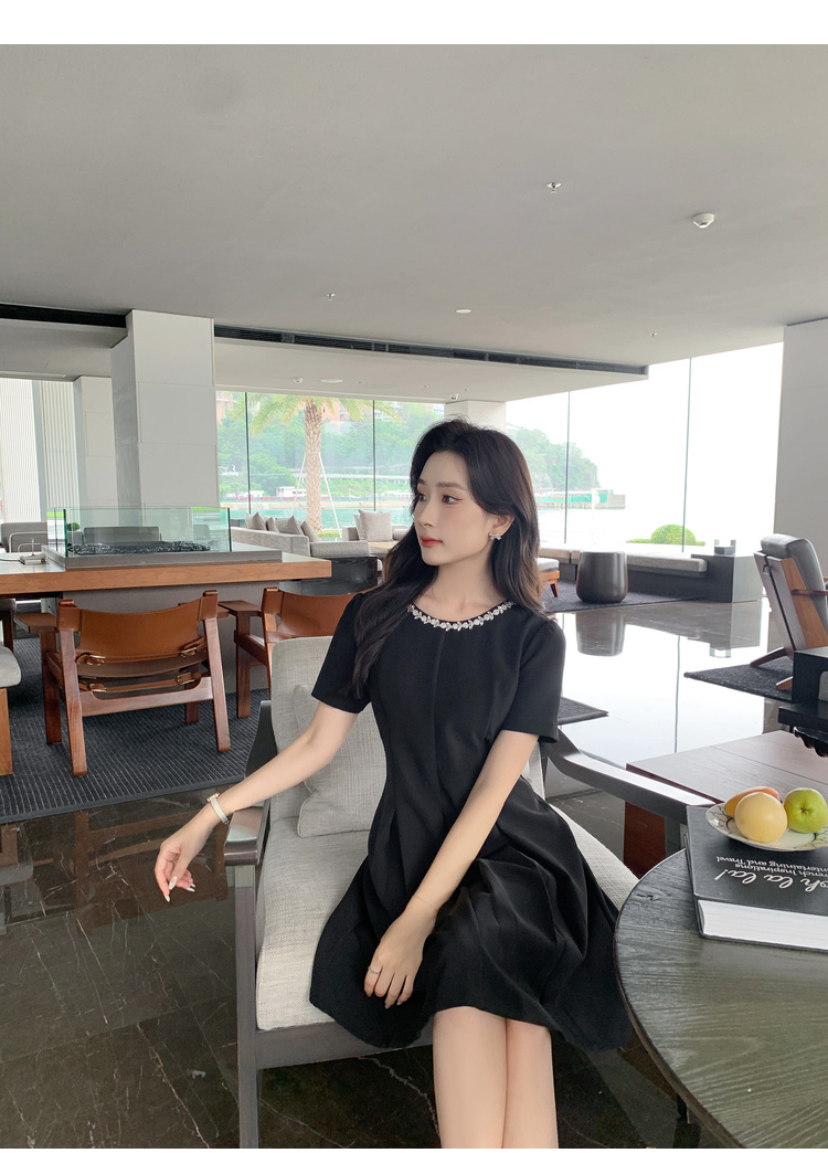 【清仓超15天不保价】[奢姿轻奢系列]圆领钻链连衣裙大码女装夏季新款胖妹妹优雅裙子8942890074