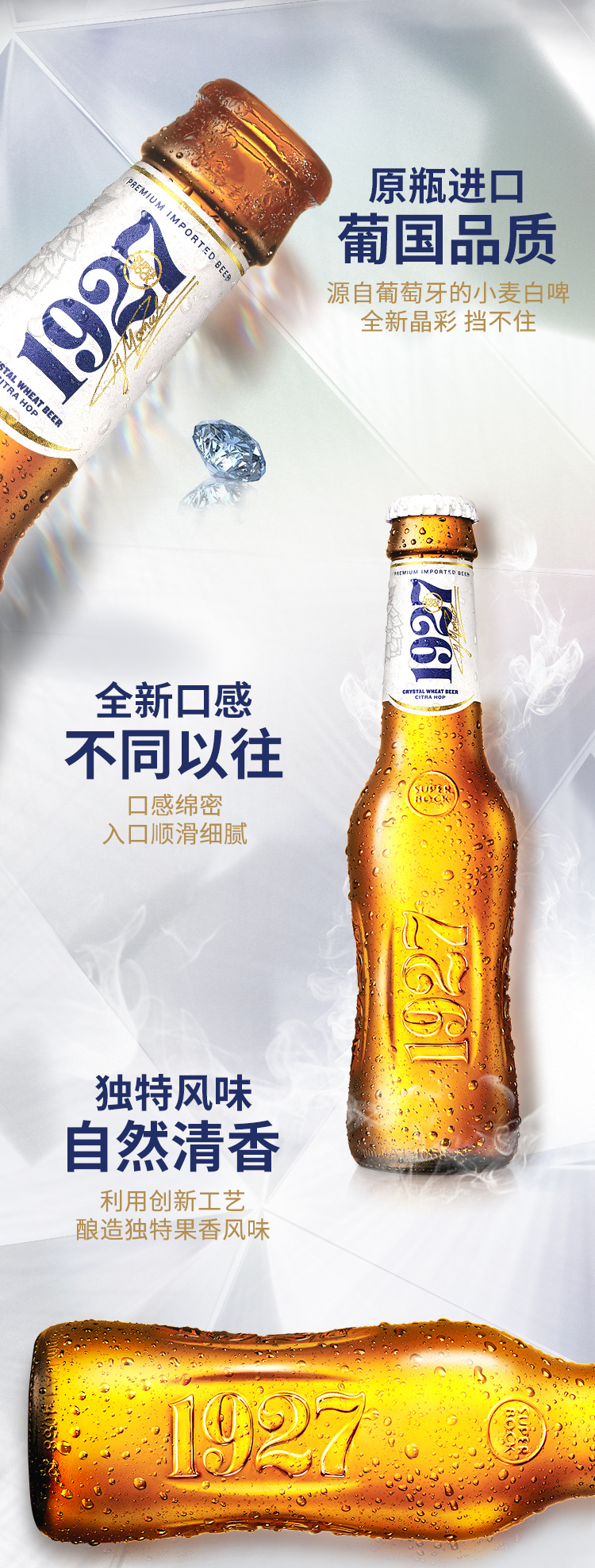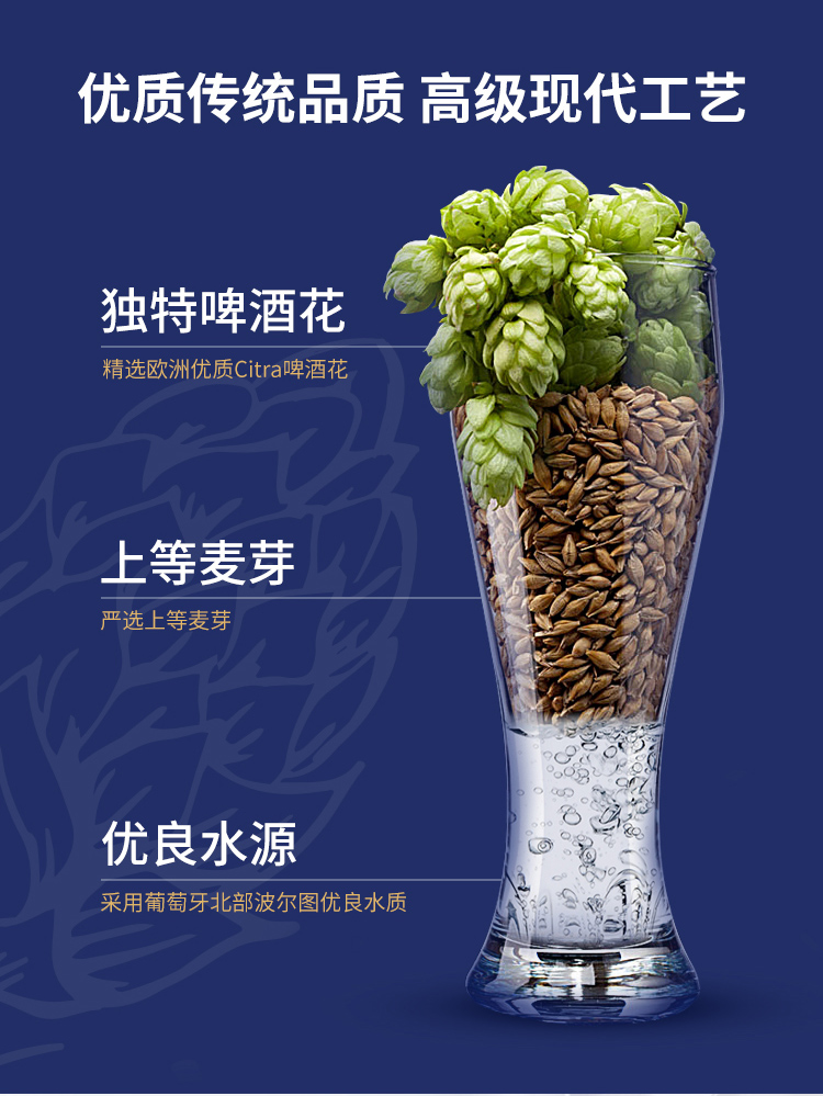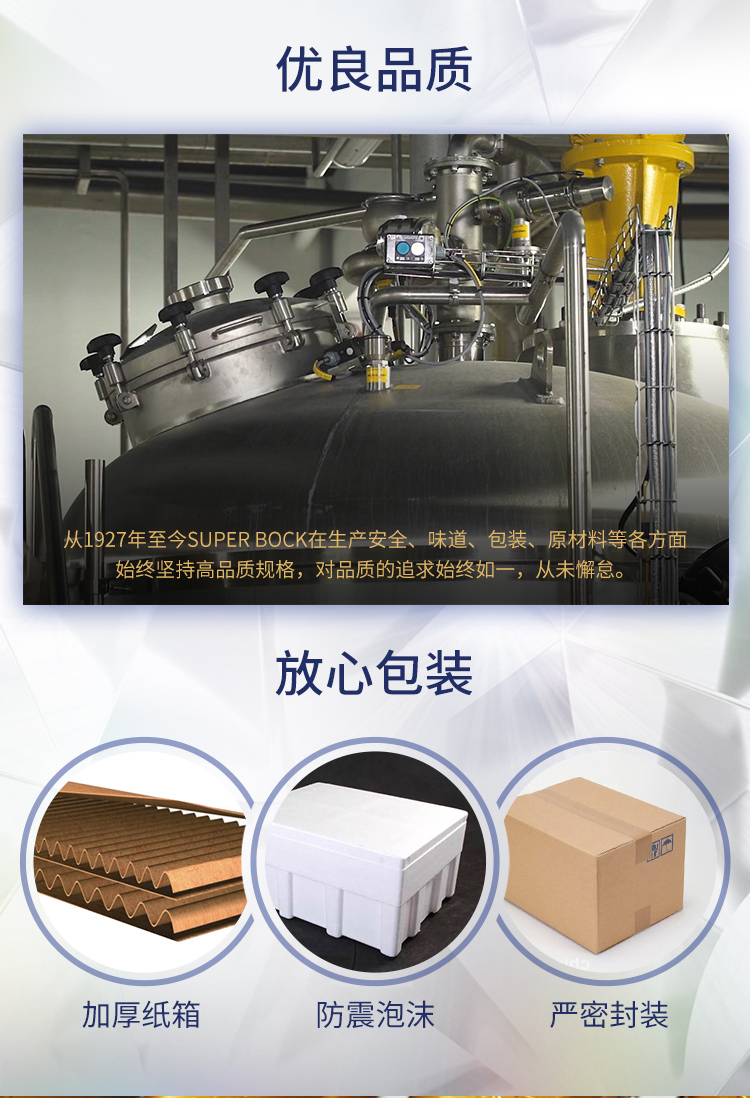 超级波克superbock葡萄牙进口1927晶白啤酒整箱原瓶装208ml*24