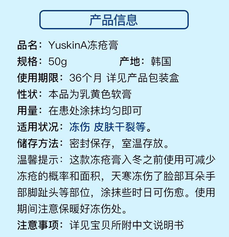 韩国进口YuskinA冻疮膏冻伤冻裂护手护脚50克-会员8折