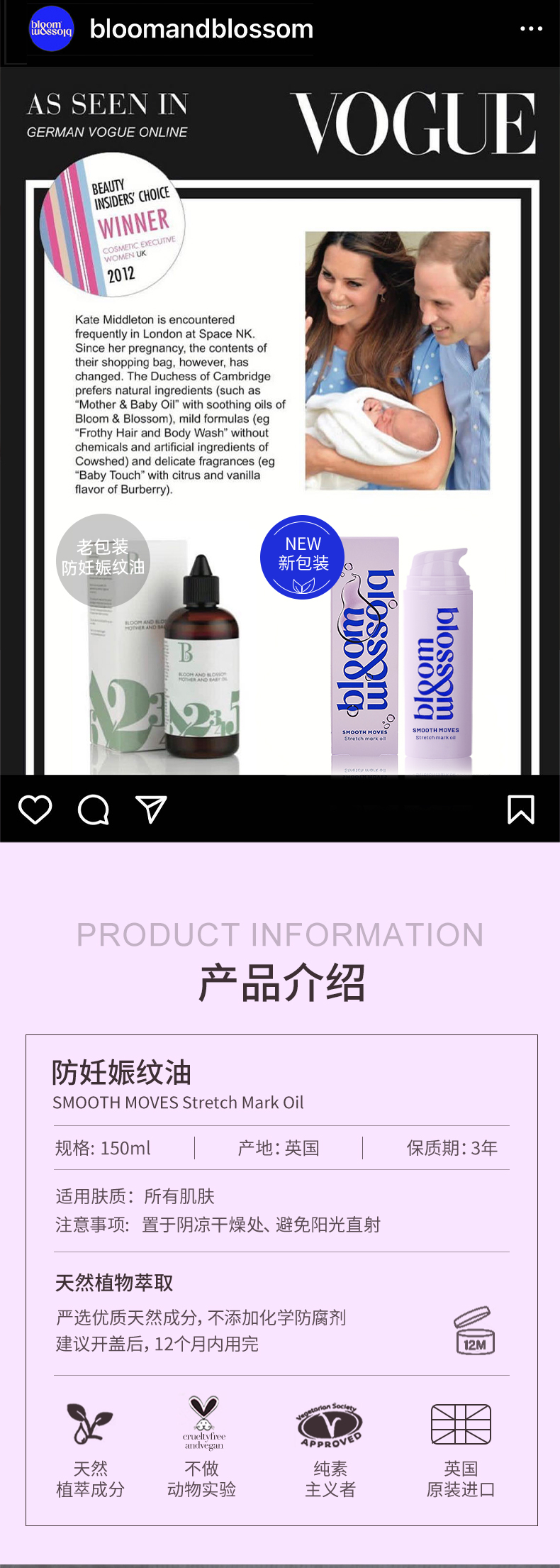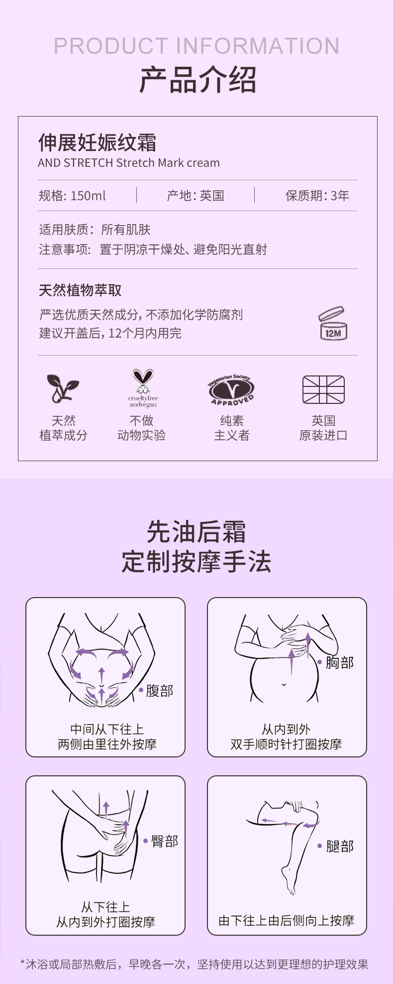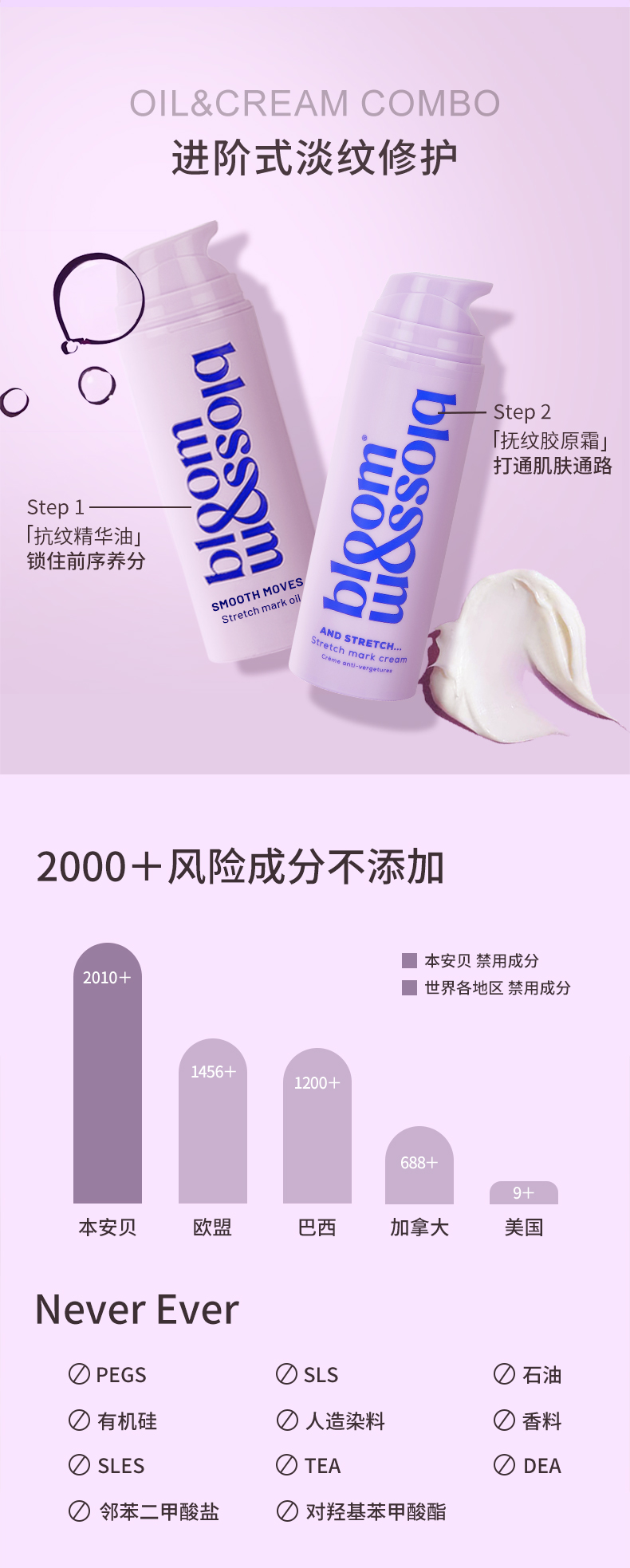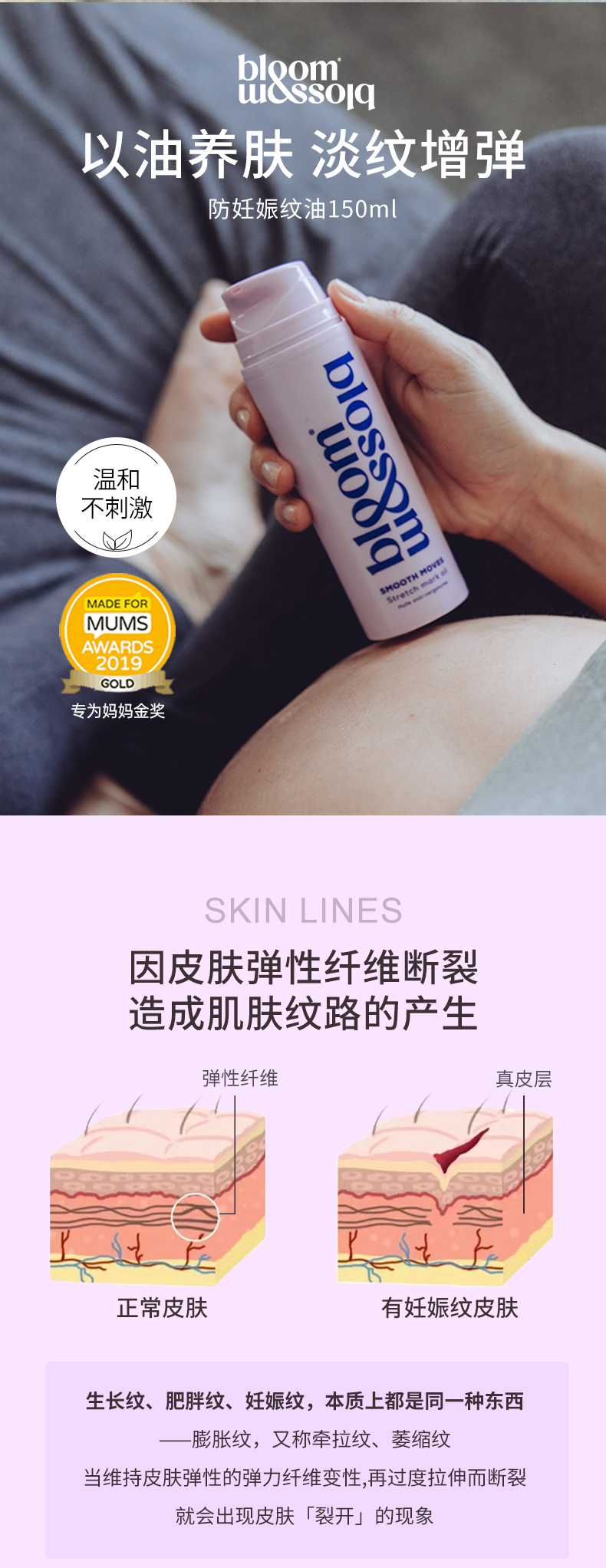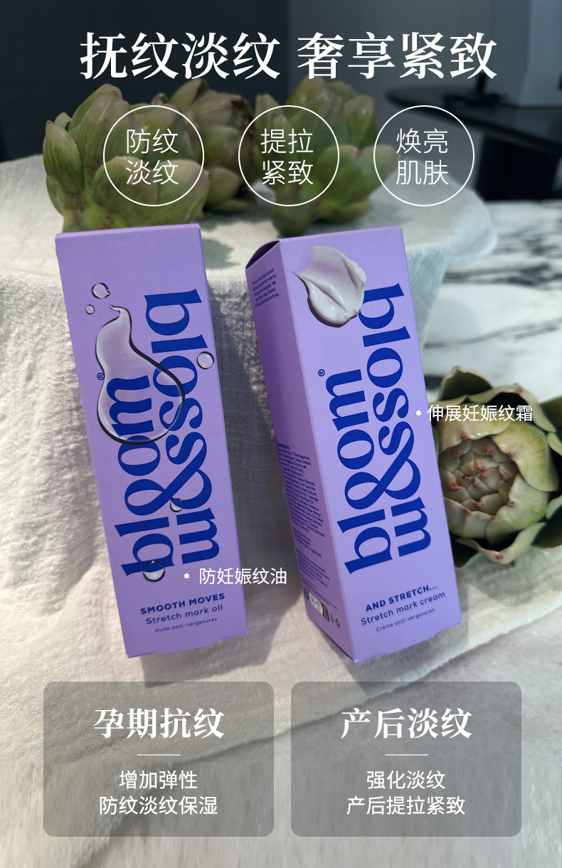 保税直发 Bloom and Blossom 防妊娠纹油 150mL+伸展妊娠纹霜 150mL