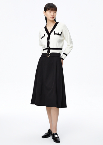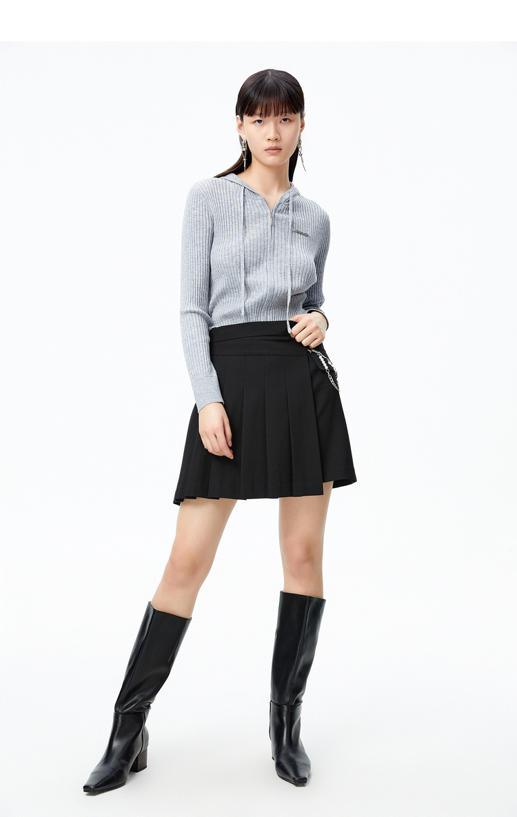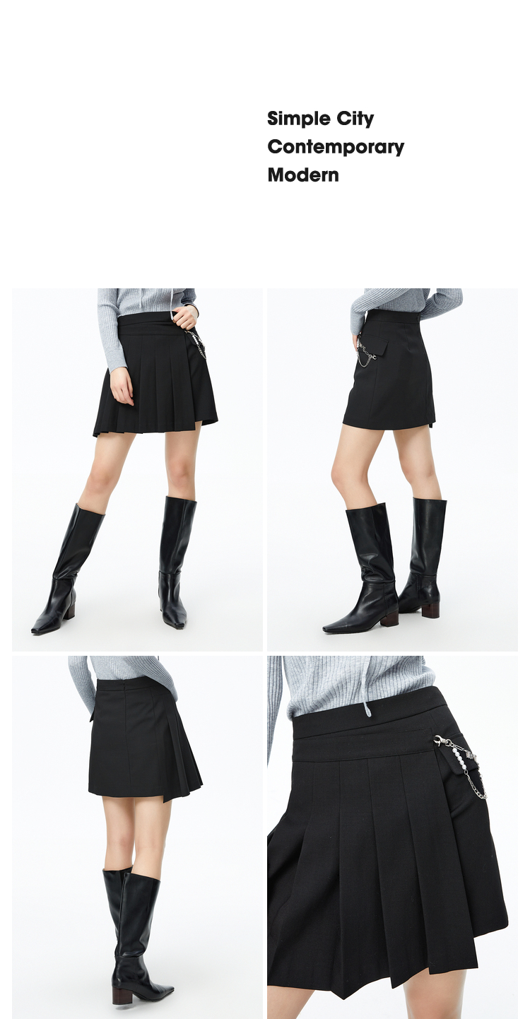 NEELLY纳俪商场同款2022秋季新款百褶裙女不对称设计A字裙显瘦N22082E01090
