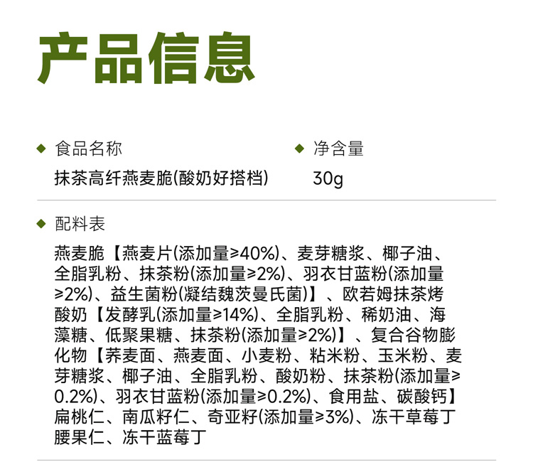西域美农 抹茶高纤燕麦脆(酸奶好搭档)30g*10袋