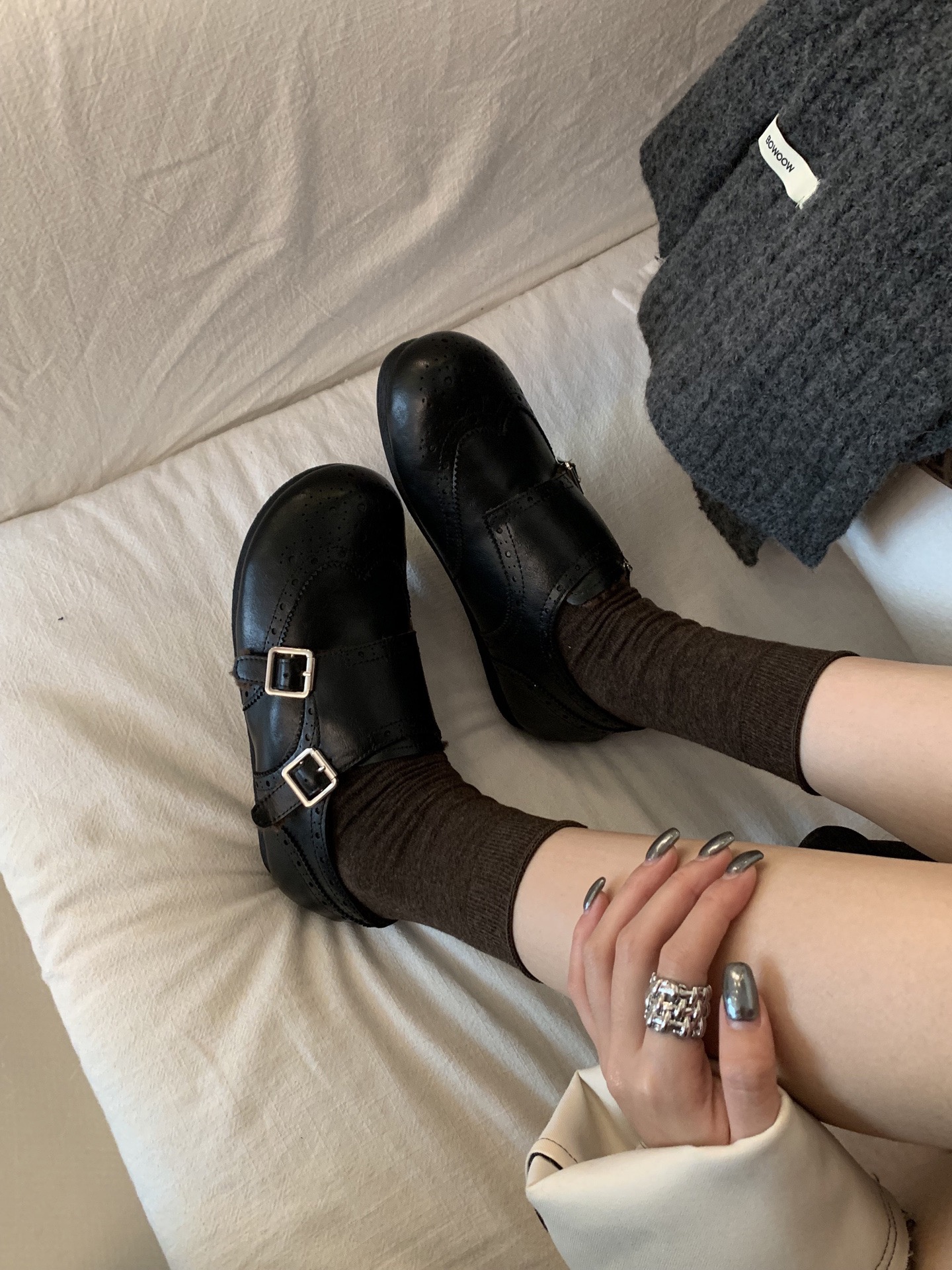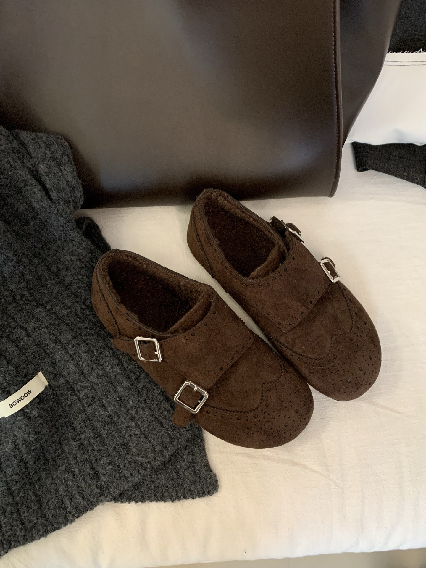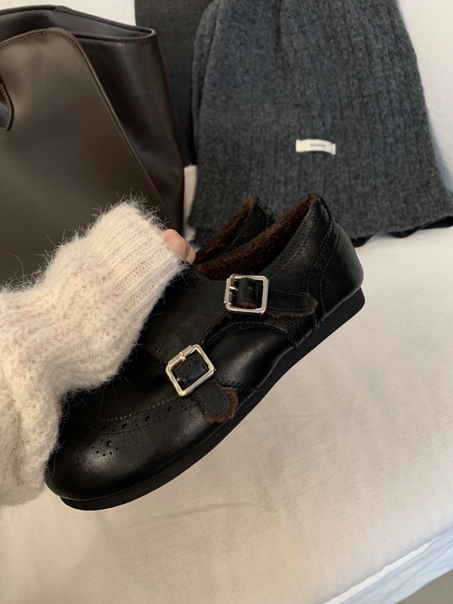 【ZUXIU 国风浮雕加绒皮鞋】三色可选,浮雕设计+皮扣搭配,复古国风设计,内里加绒+橡胶底,暖你一冬天~