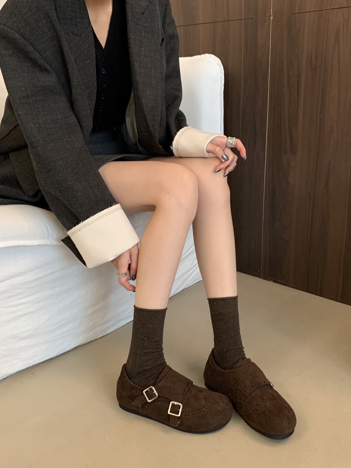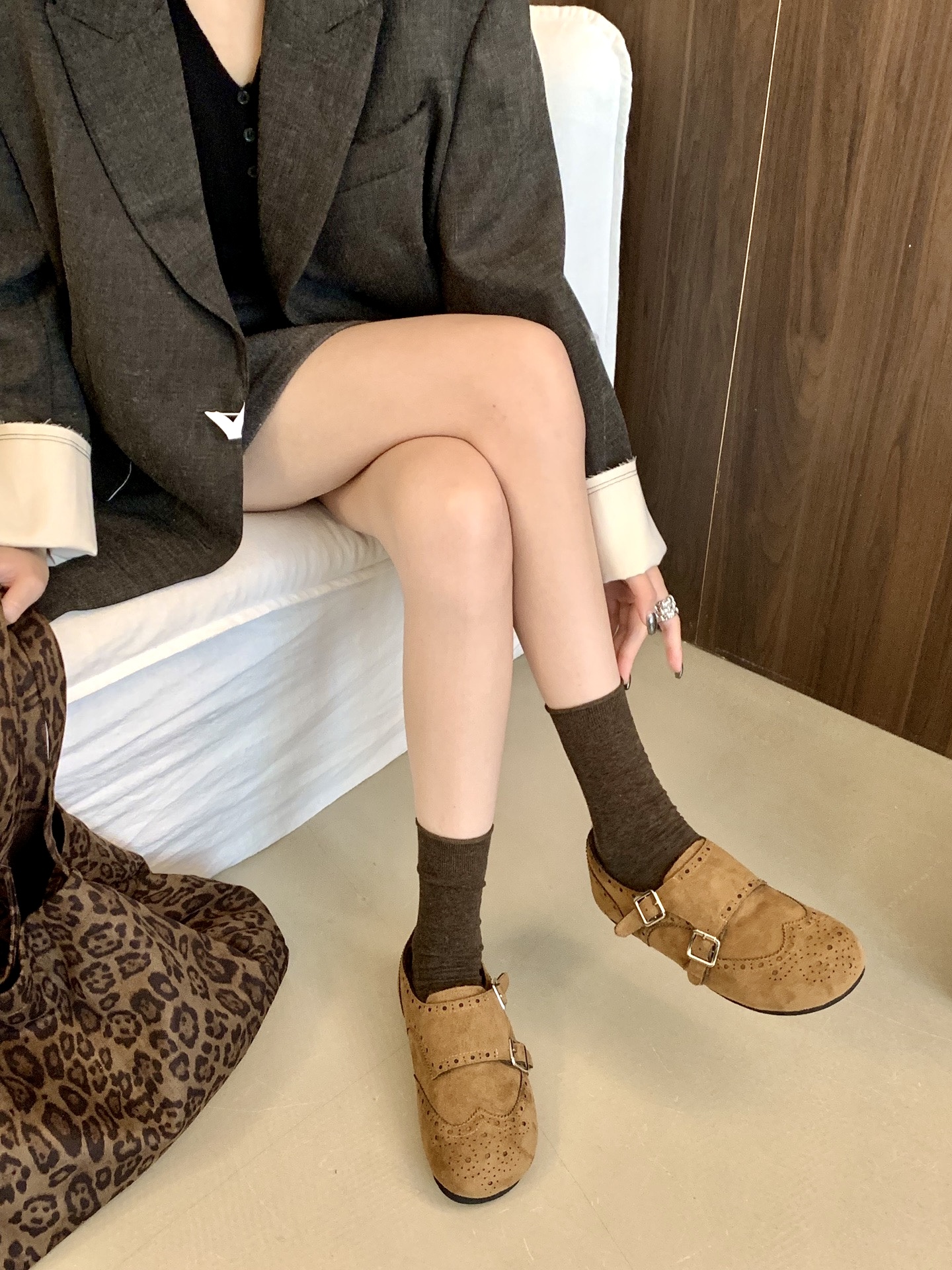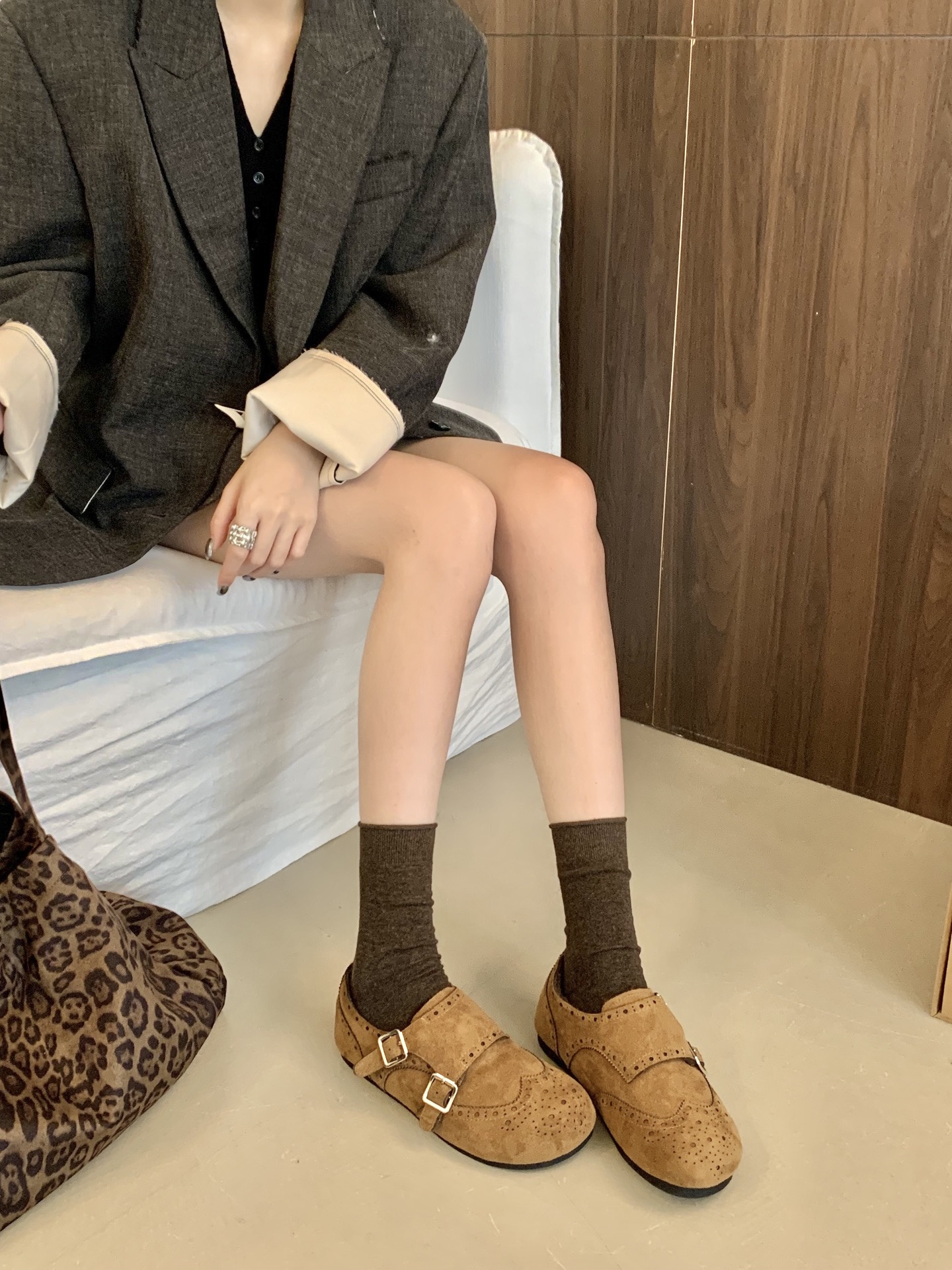 【ZUXIU 国风浮雕加绒皮鞋】三色可选,浮雕设计+皮扣搭配,复古国风设计,内里加绒+橡胶底,暖你一冬天~