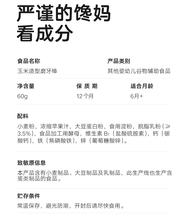 宝宝馋了 婴幼儿玉米形磨牙棒 60g*2