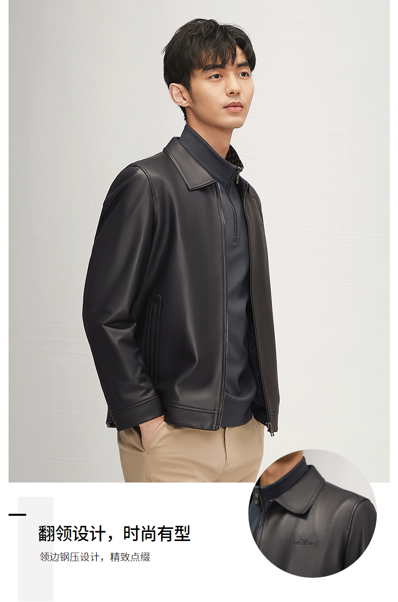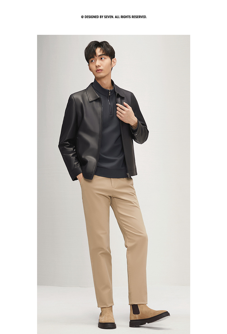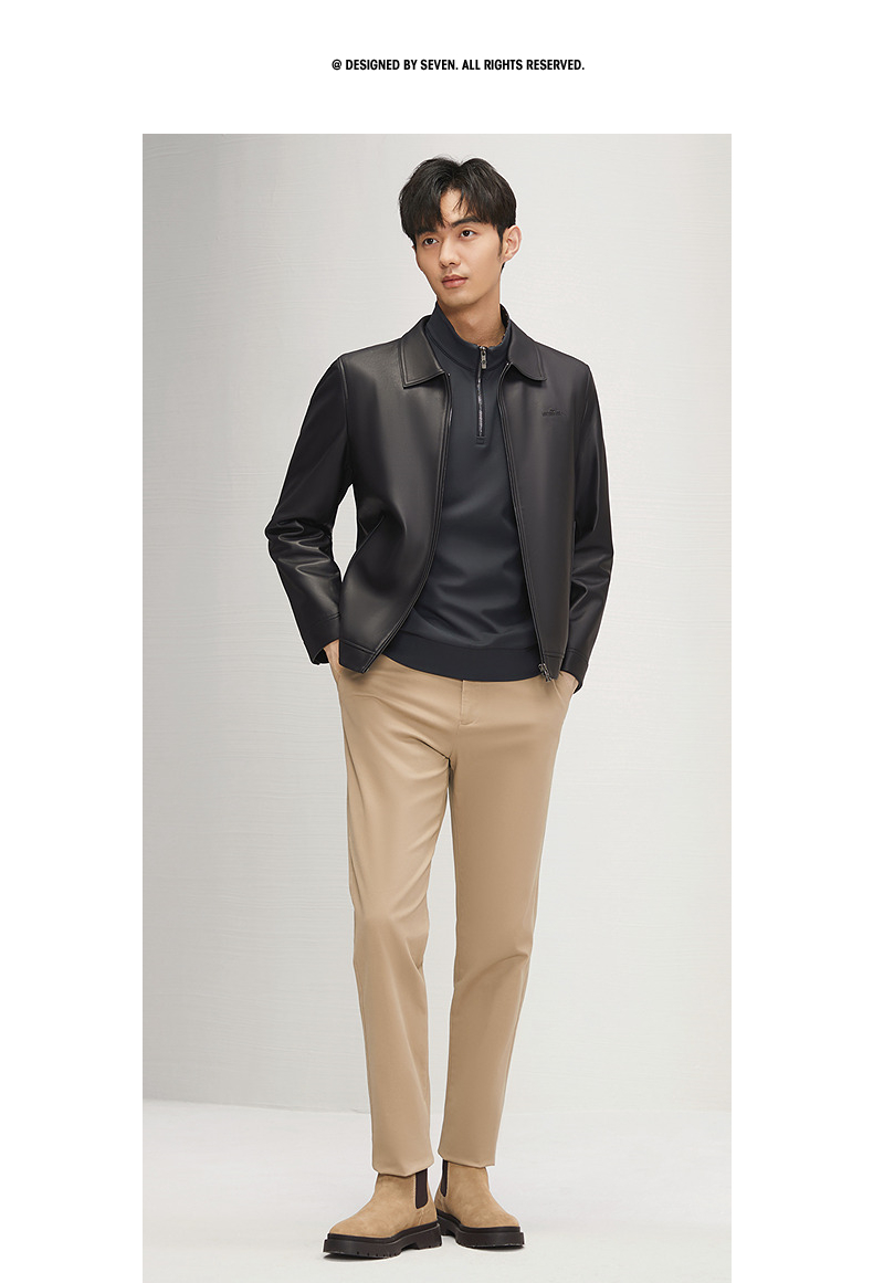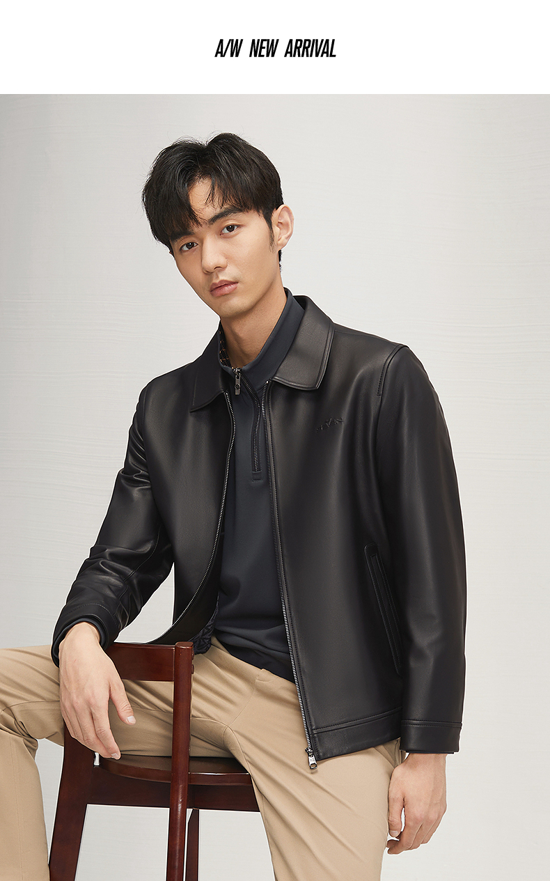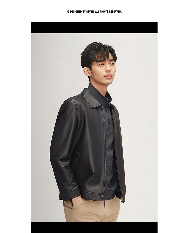 【绵羊皮】柒牌真皮皮衣男2024秋季新款翻领商务休闲黑色夹克外套 127J70100