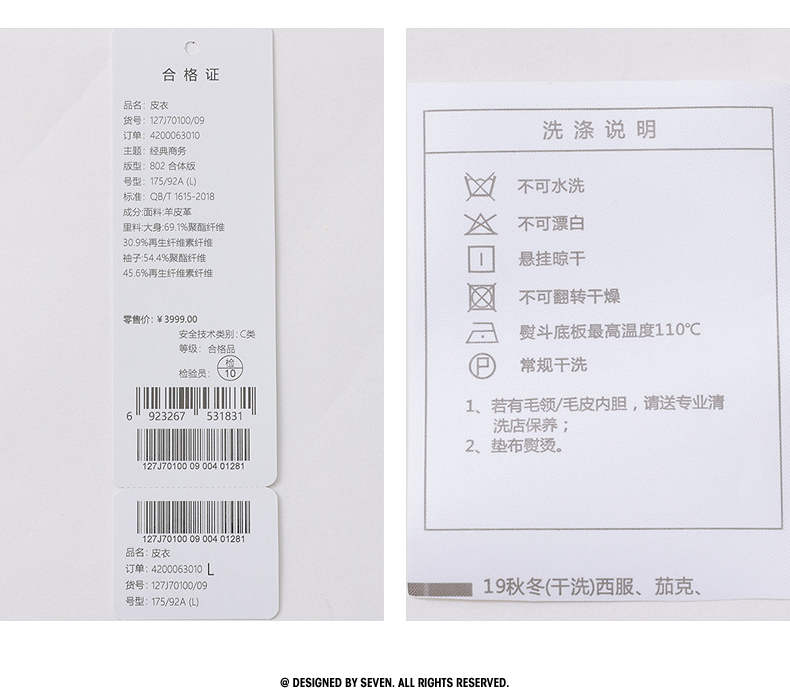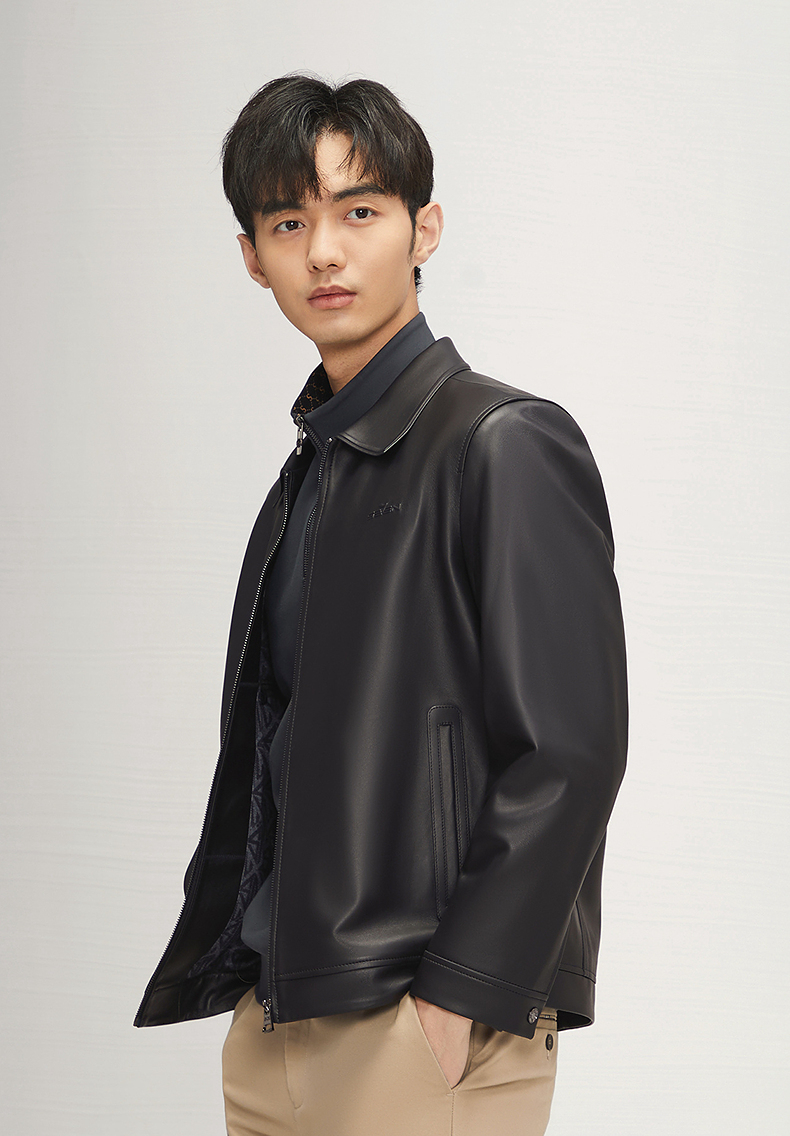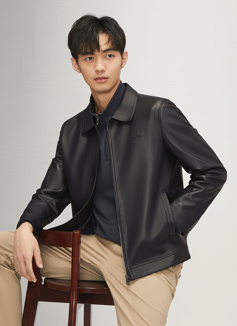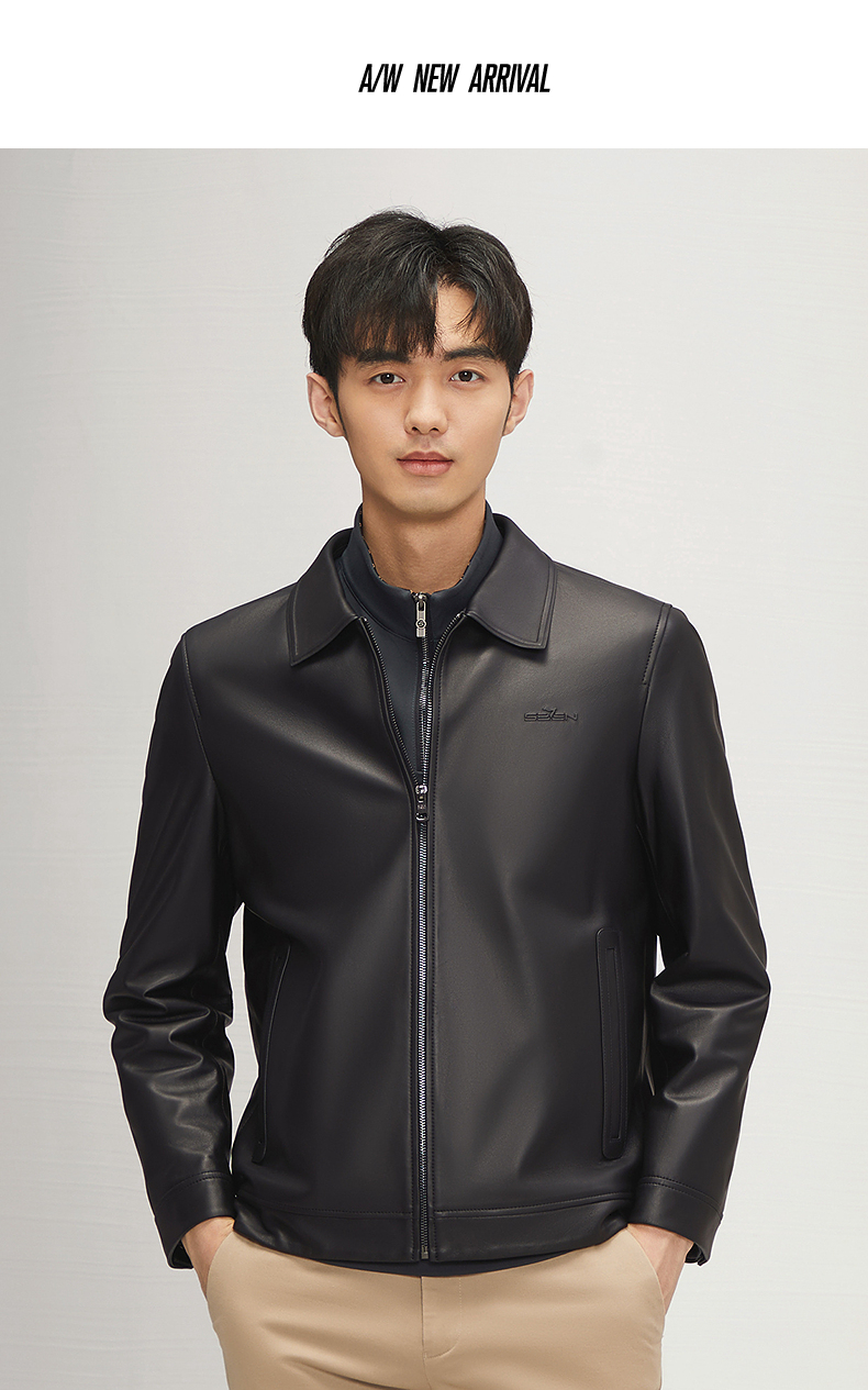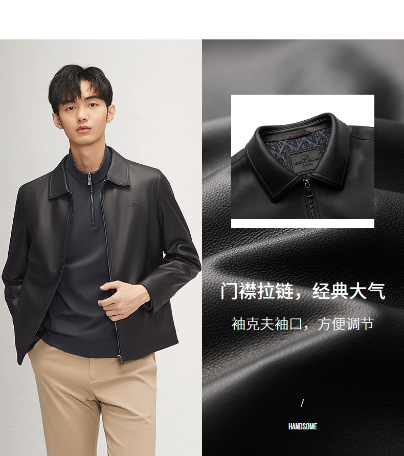 【绵羊皮】柒牌真皮皮衣男2024秋季新款翻领商务休闲黑色夹克外套 127J70100