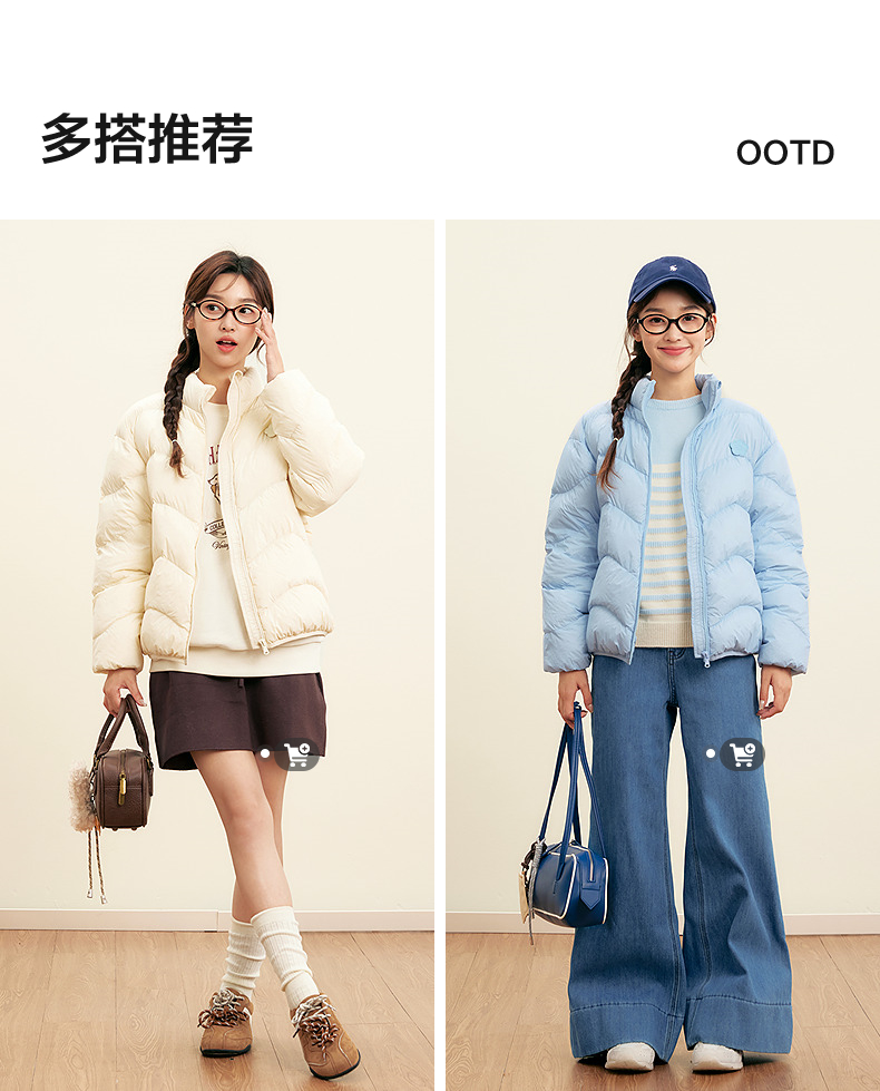 笛莎Deesha青少年女童羽绒服2025秋季女童立领小花标羽绒服