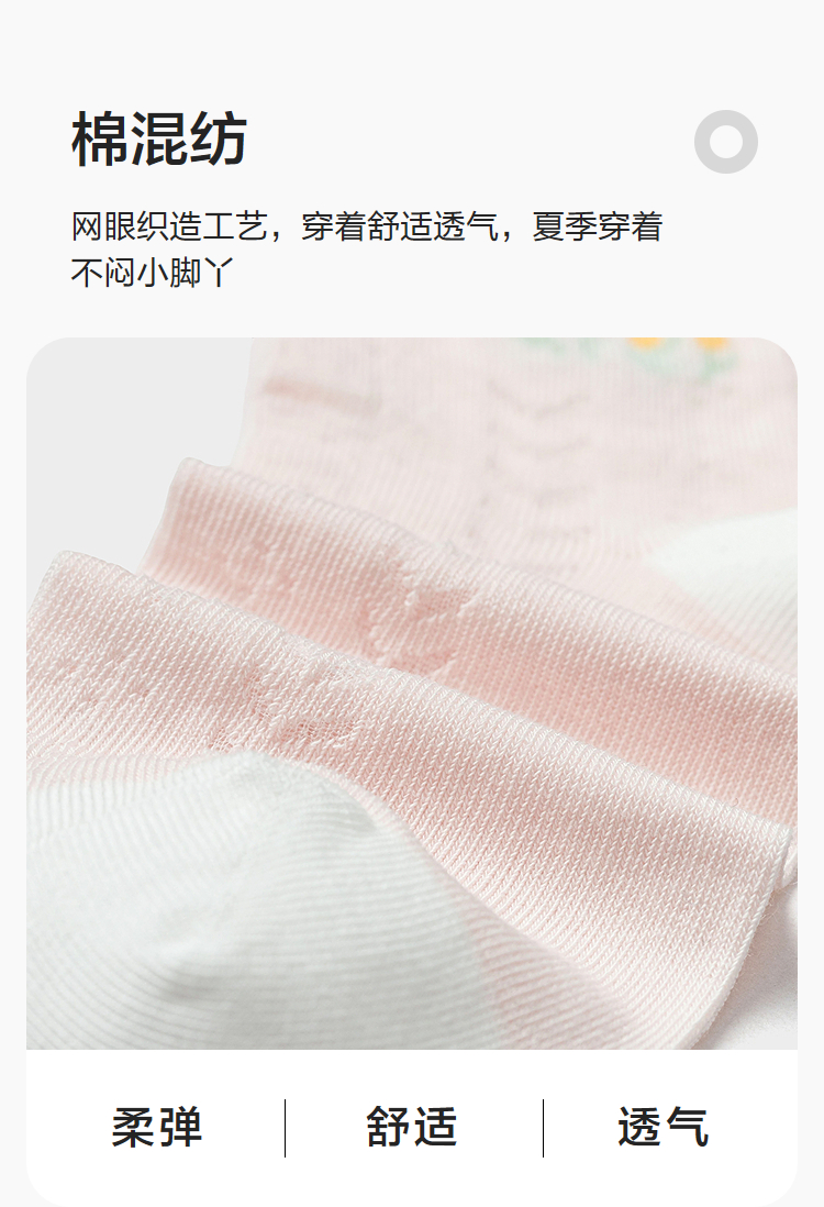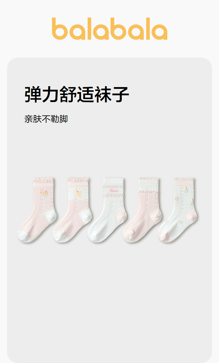 【balaOne】巴拉巴拉儿童袜子夏新款网眼透气女童短袜甜美五双装