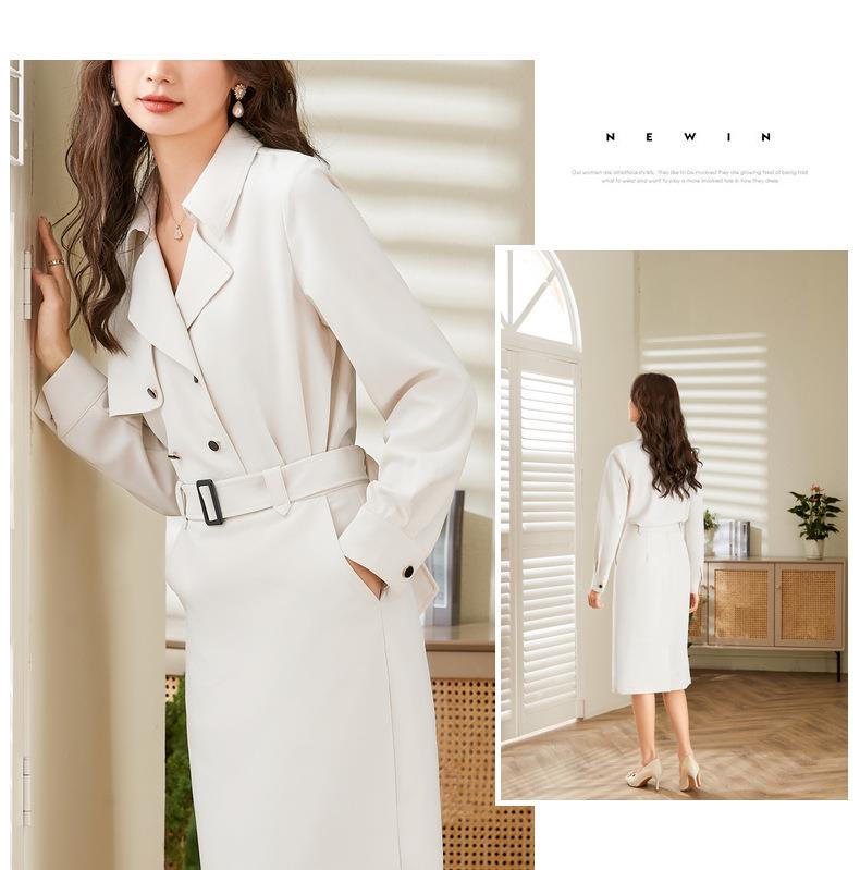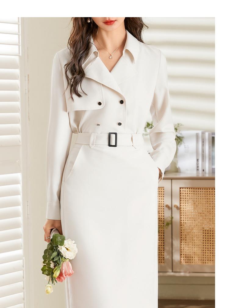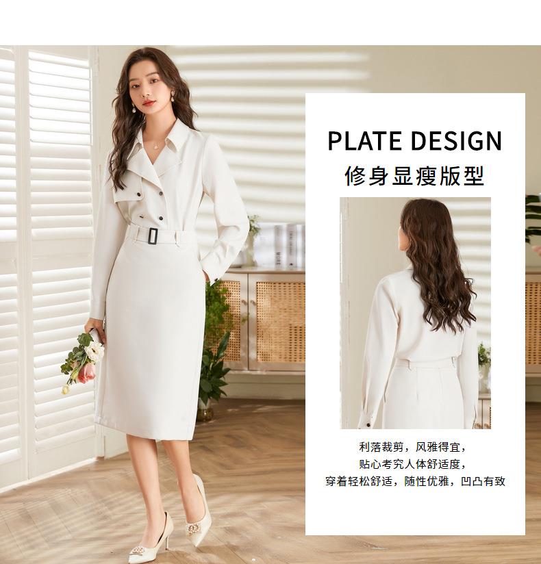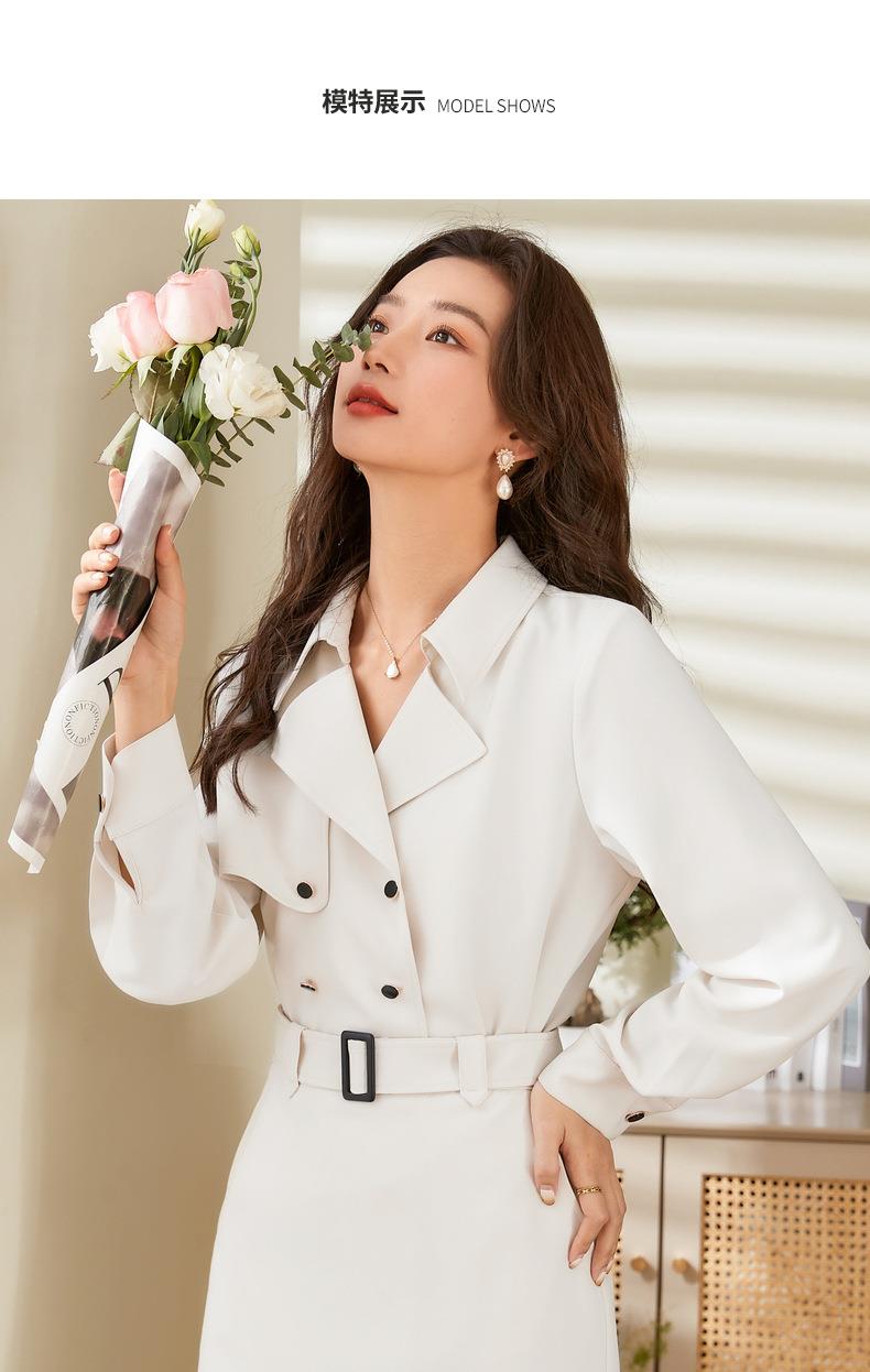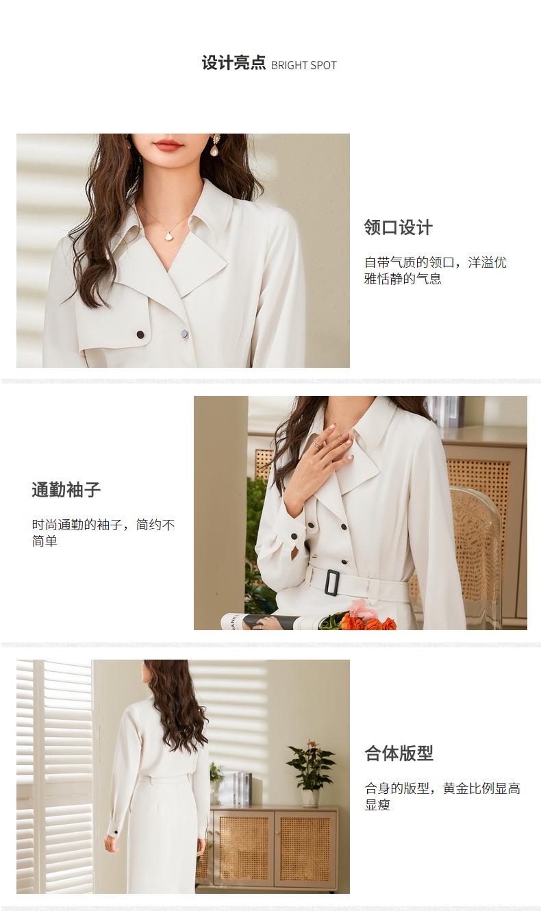 百姿 双排扣衬衫2023秋季新款纯色西装领时尚长袖上衣女231005