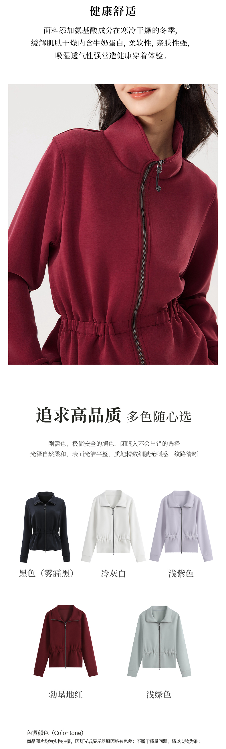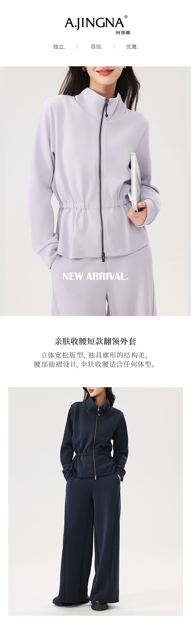 【亲肤健康】阿菁娜莫代尔收腰短款立体宽松翻领外套F31C207002