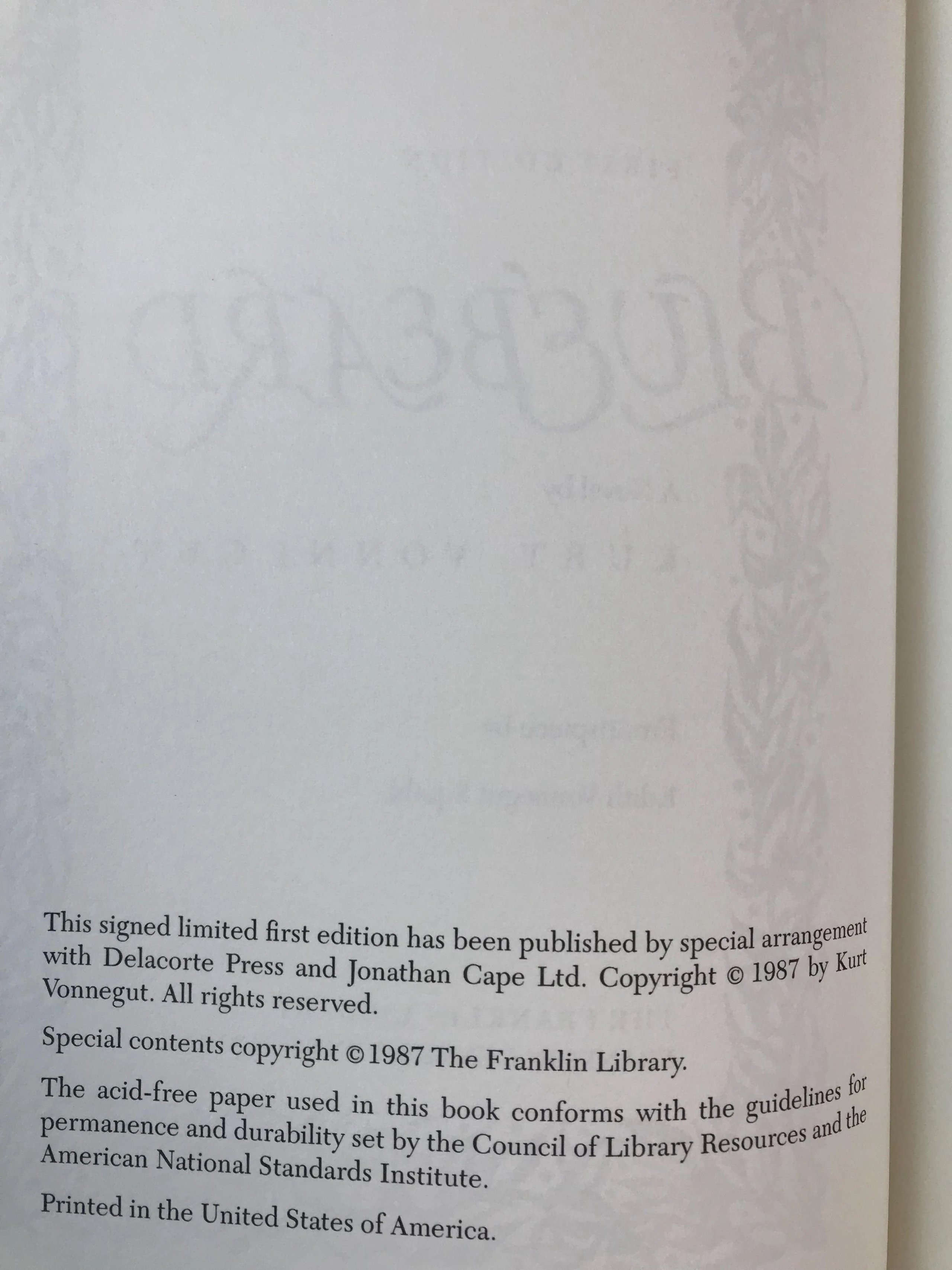 签名首版!库尔特・冯内古特《蓝胡子》 富兰克林图书馆豪华皮装本