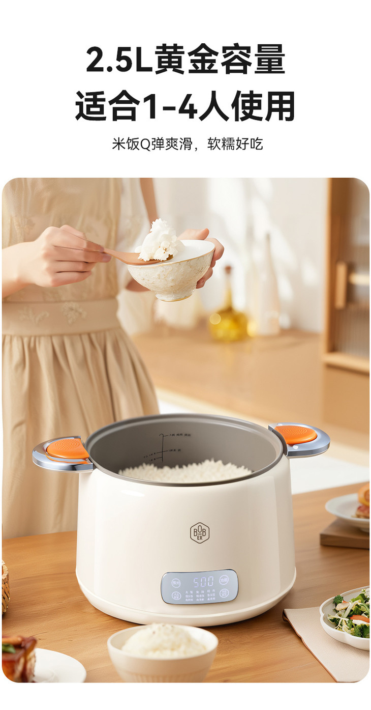 4L大容量,小家庭使用也刚刚好 也不会有浪费,煮出来的米饭Q弹爽滑 再也不担心孩子挑食了