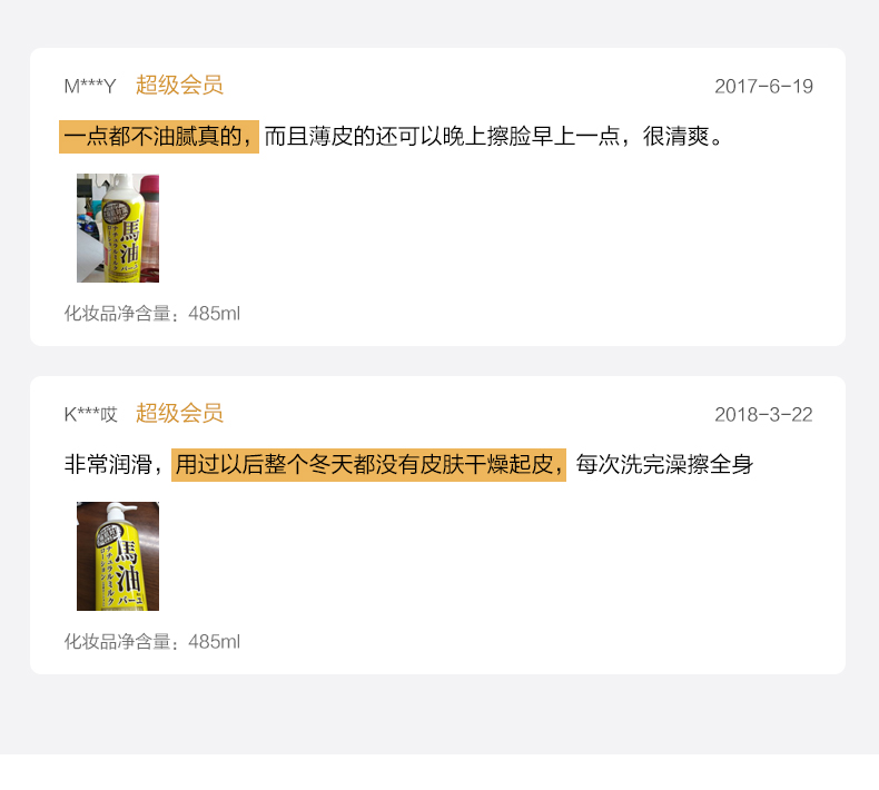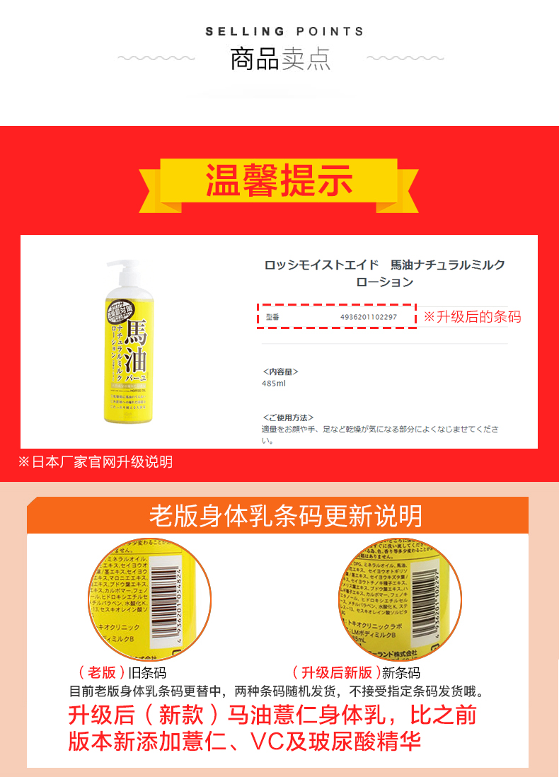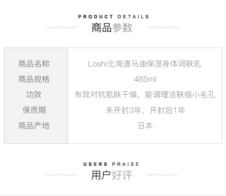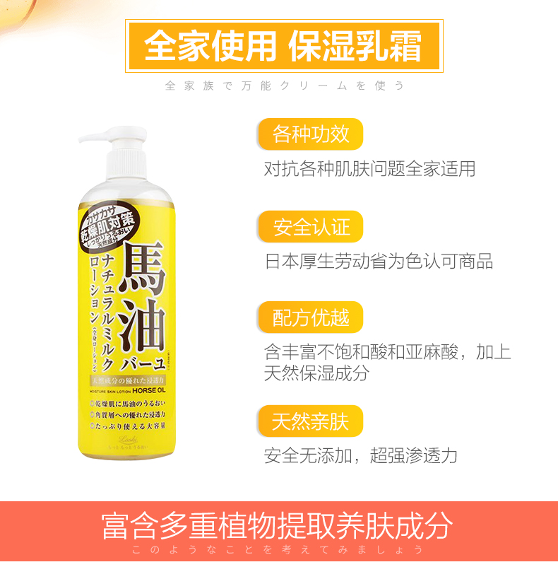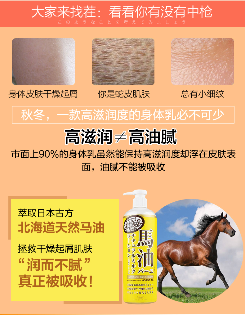 【YZ】Loshi北海道进口马油身体乳液补水保湿全身润肤乳滋润香体乳485ml