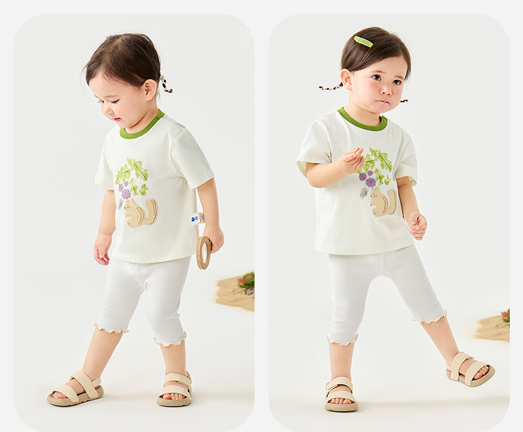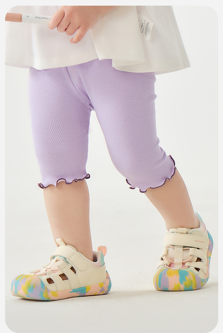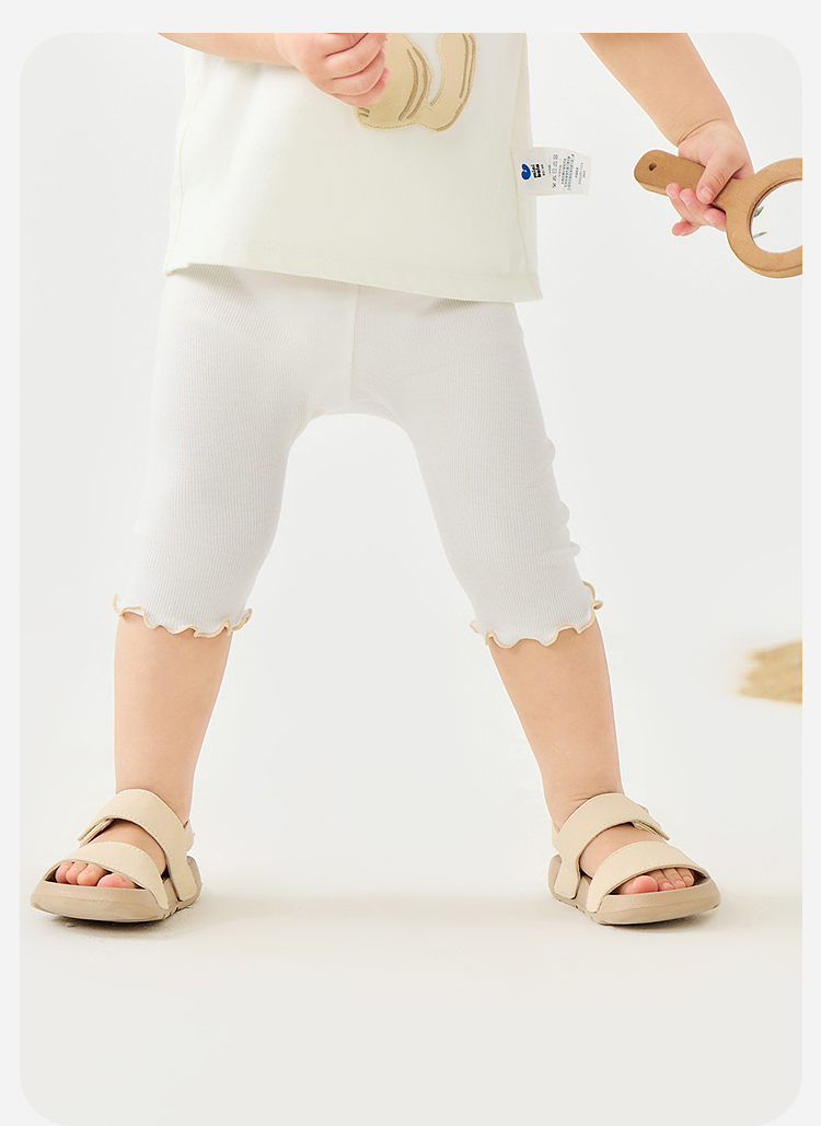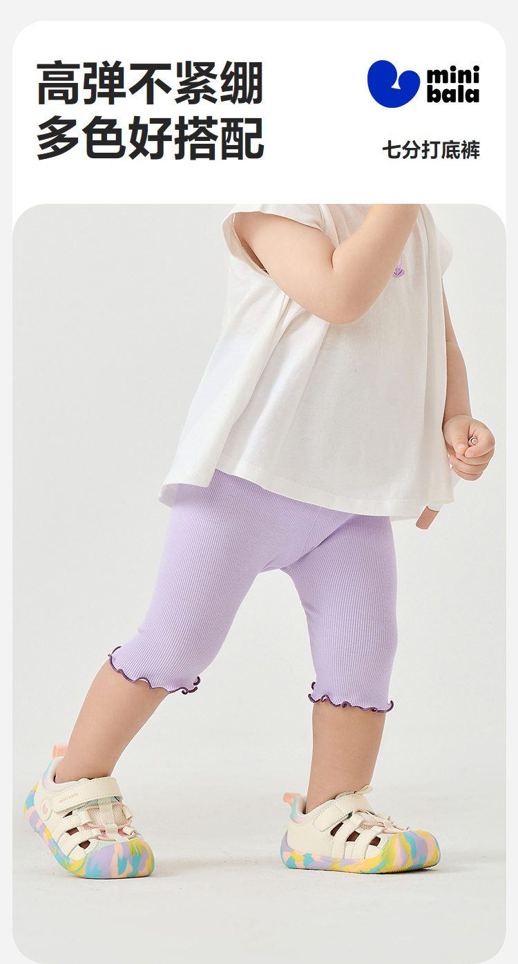迷你巴拉女宝打底裤夏高弹柔软裤子莫代尔甜美罗纹七分裤
