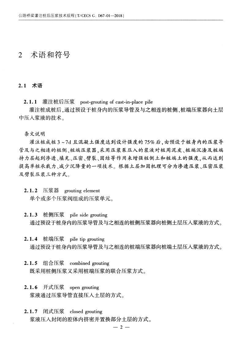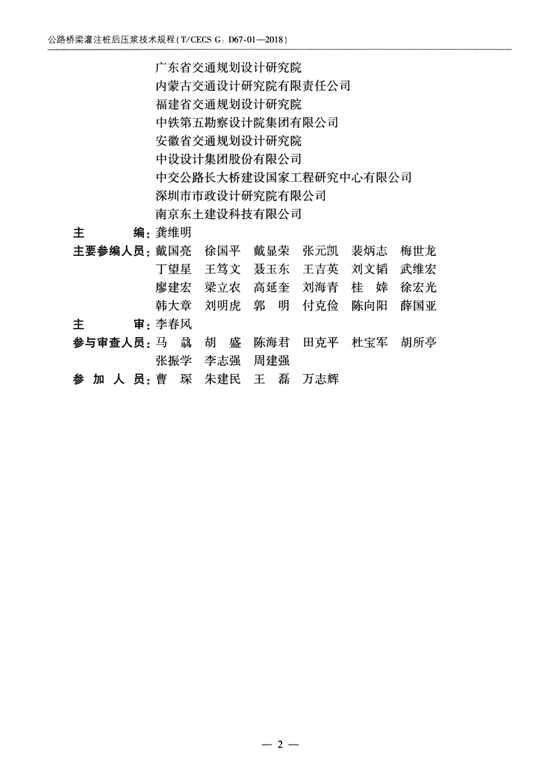 书名:公路桥梁灌注桩后压浆技术规程( T/CECS G:D67-01—2018)