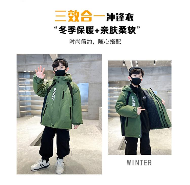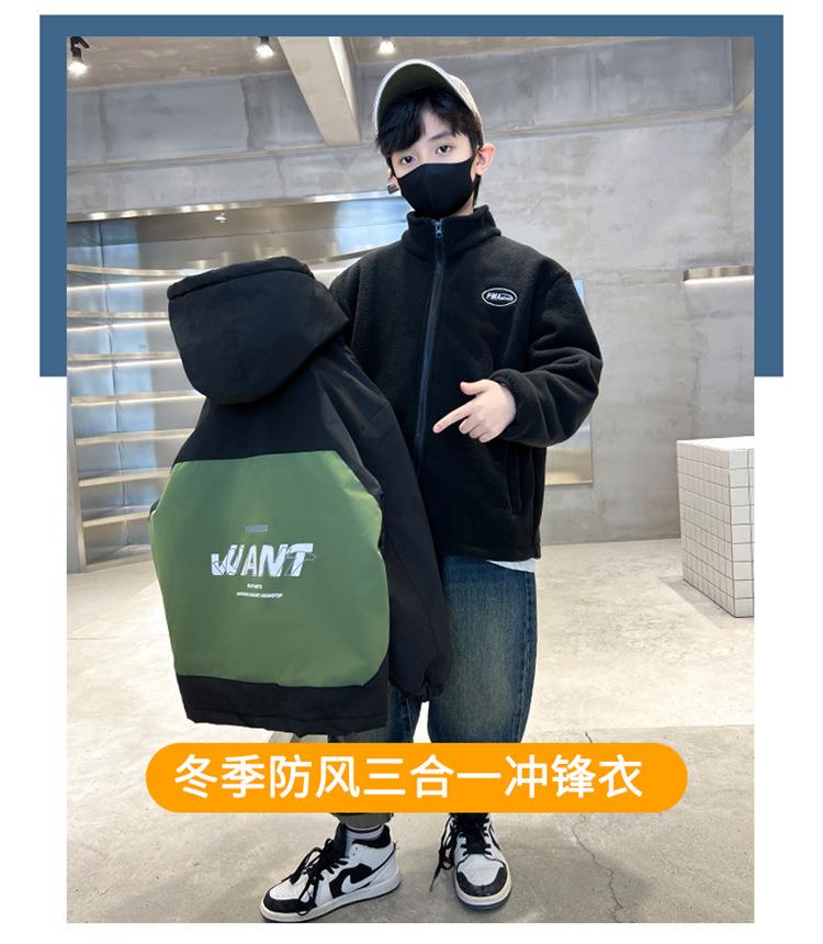 男童外套秋冬季2025新款儿童冲锋衣三合一可拆卸男孩洋气加绒春秋