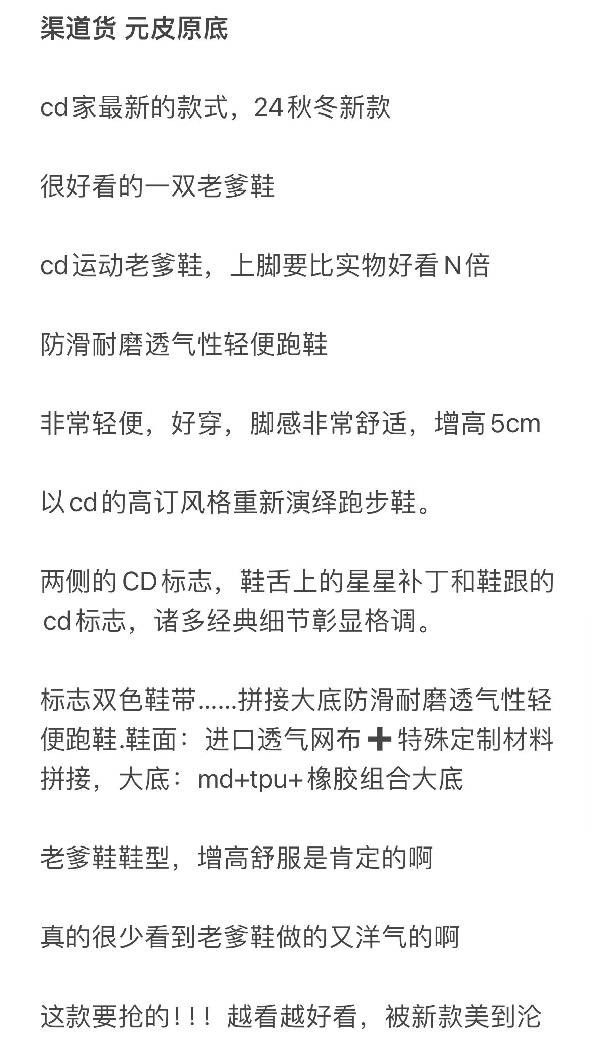 重磅渠道 CD老爹运动鞋 黑白配 5cm增高超轻厚底休闲鞋