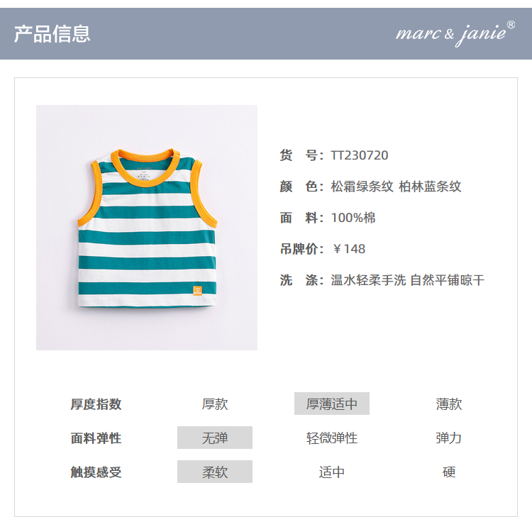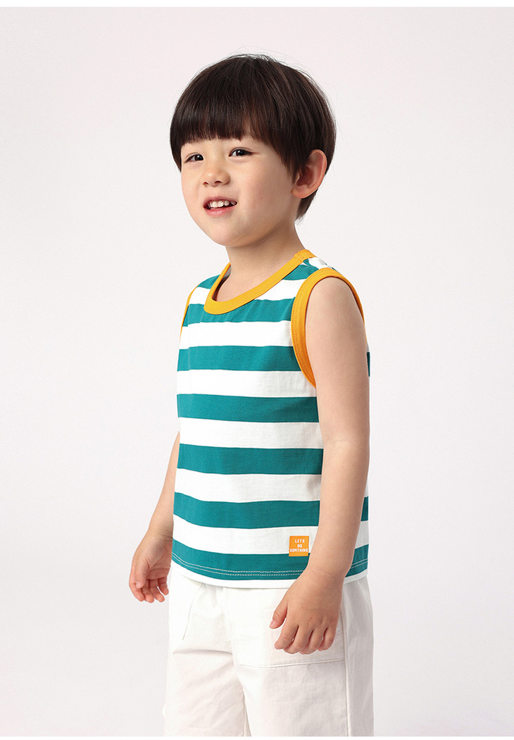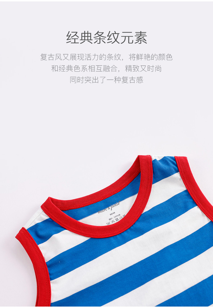 马克珍妮新款夏装 男童学院风条纹撞色纯棉背心230720