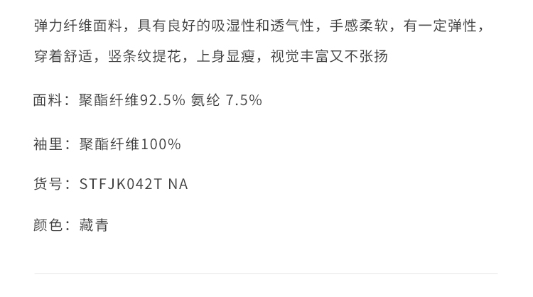 callisto藏青聚酯纤维混纺便西 STFJK042T