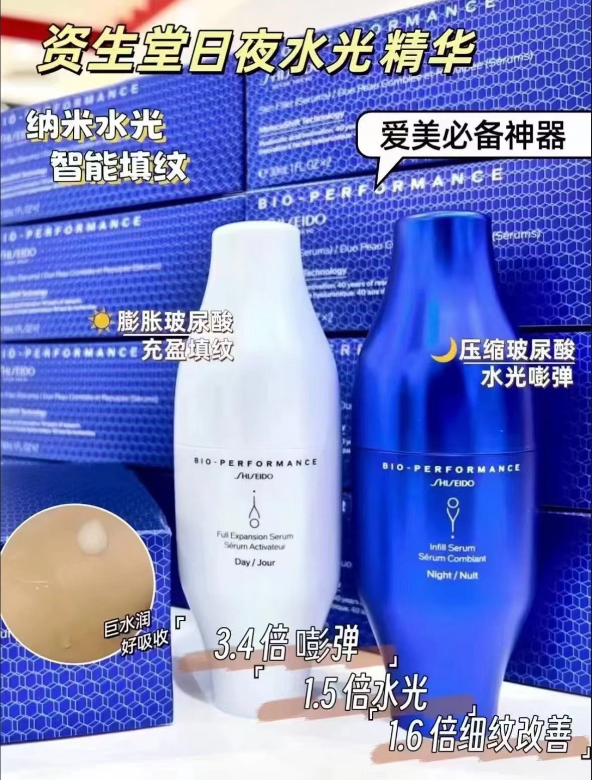资生堂 百优澎润 日精华30ml+夜精华30ml