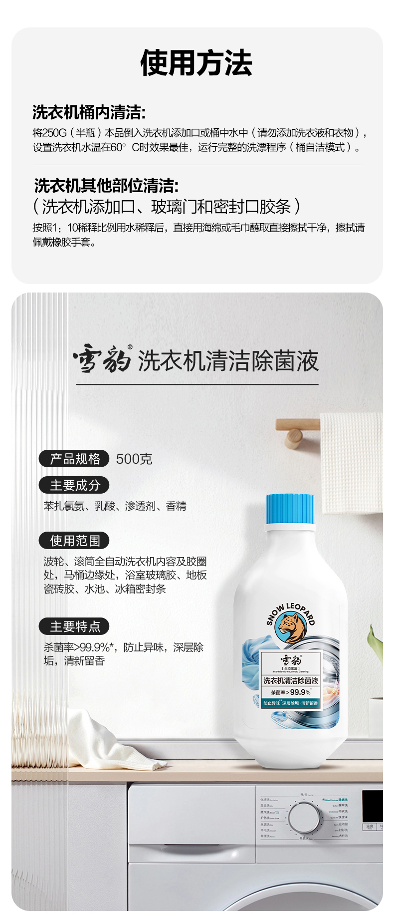 雪豹生态家清 洗衣机清洁除菌液(生态家清)500g 3347