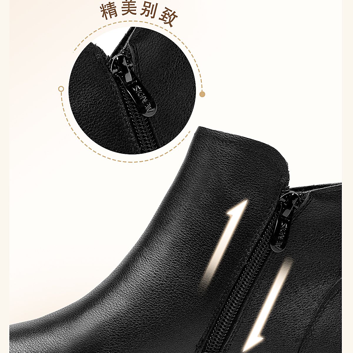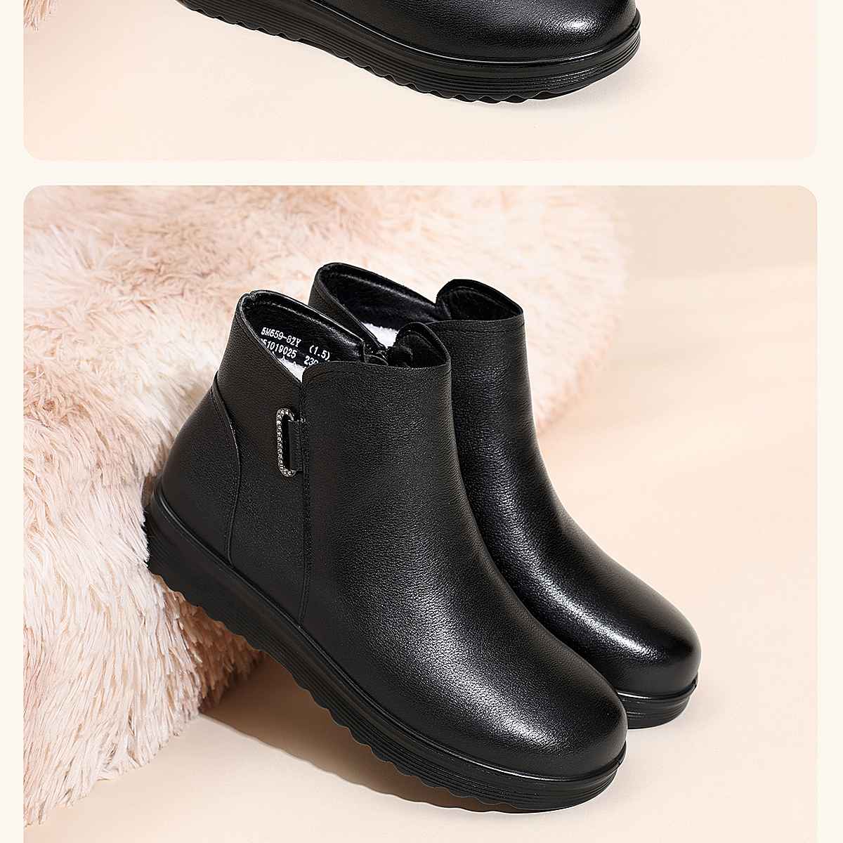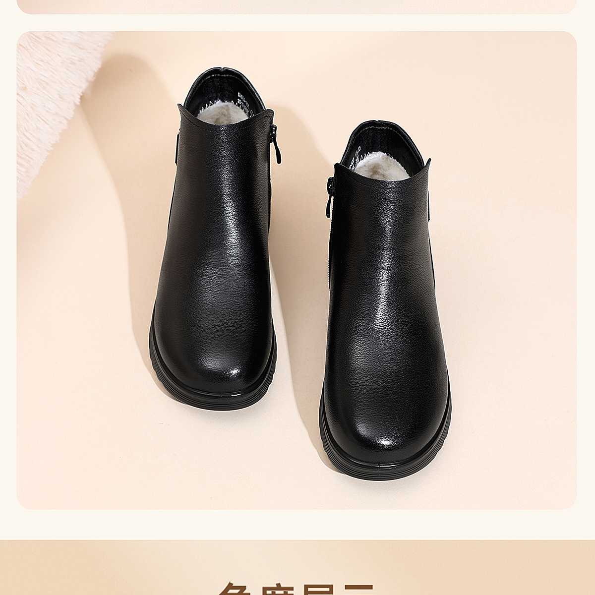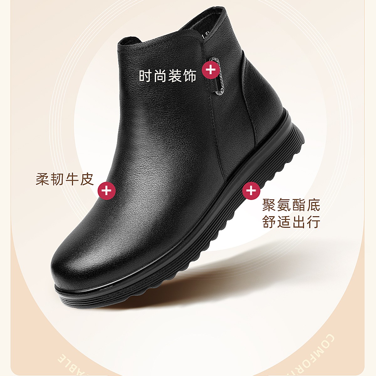 信诺妈妈鞋女真皮软底短靴加绒保暖棉鞋中老年人皮鞋2025冬季新款5M659-8ZY