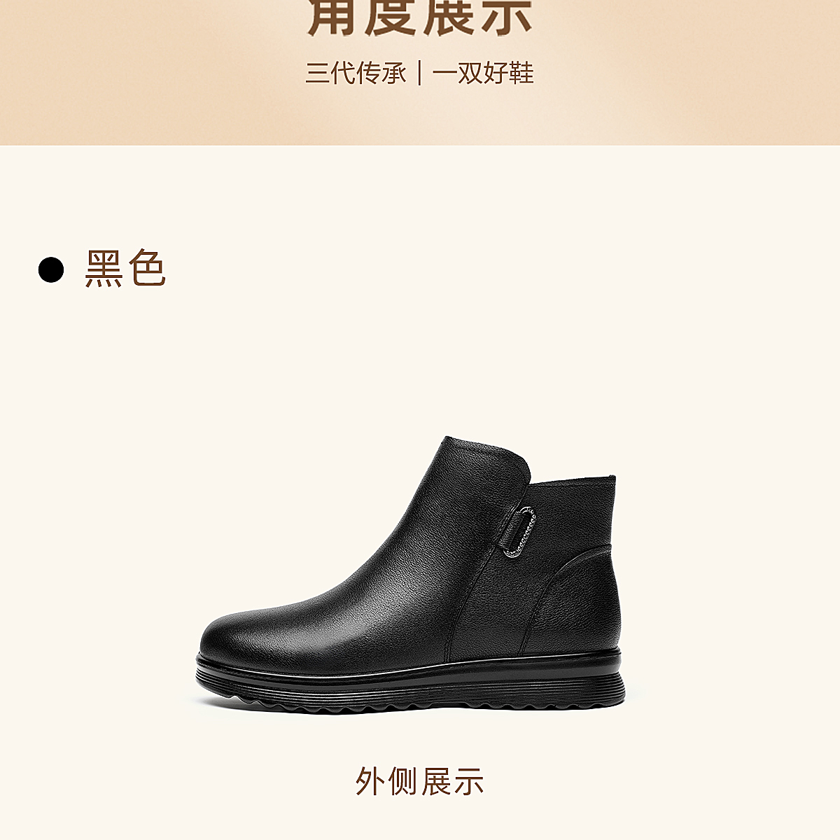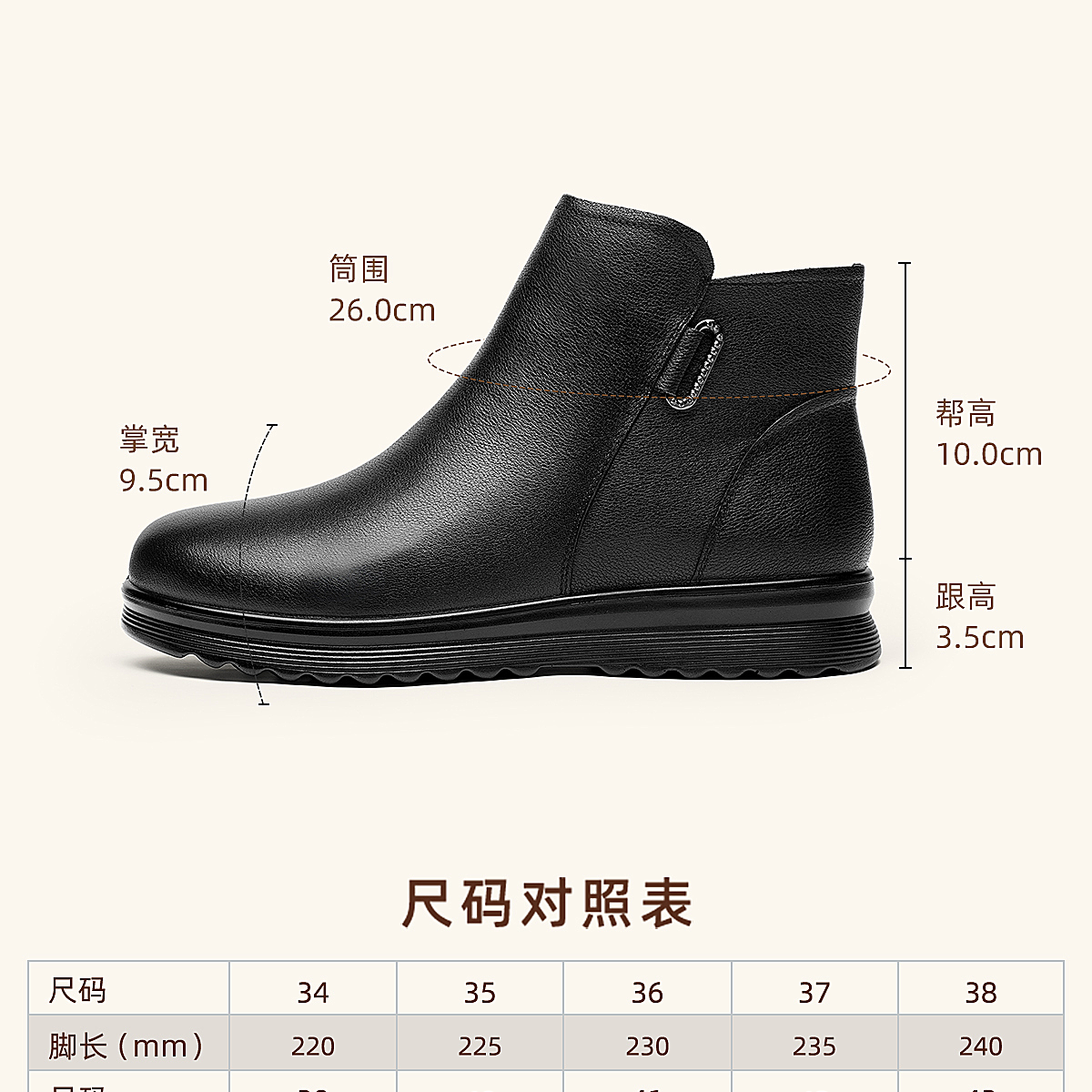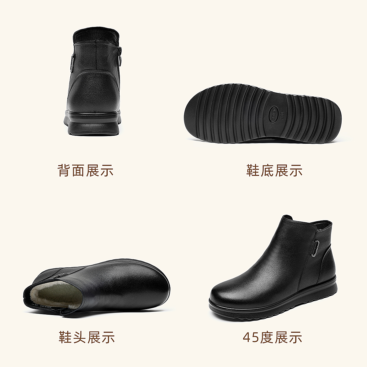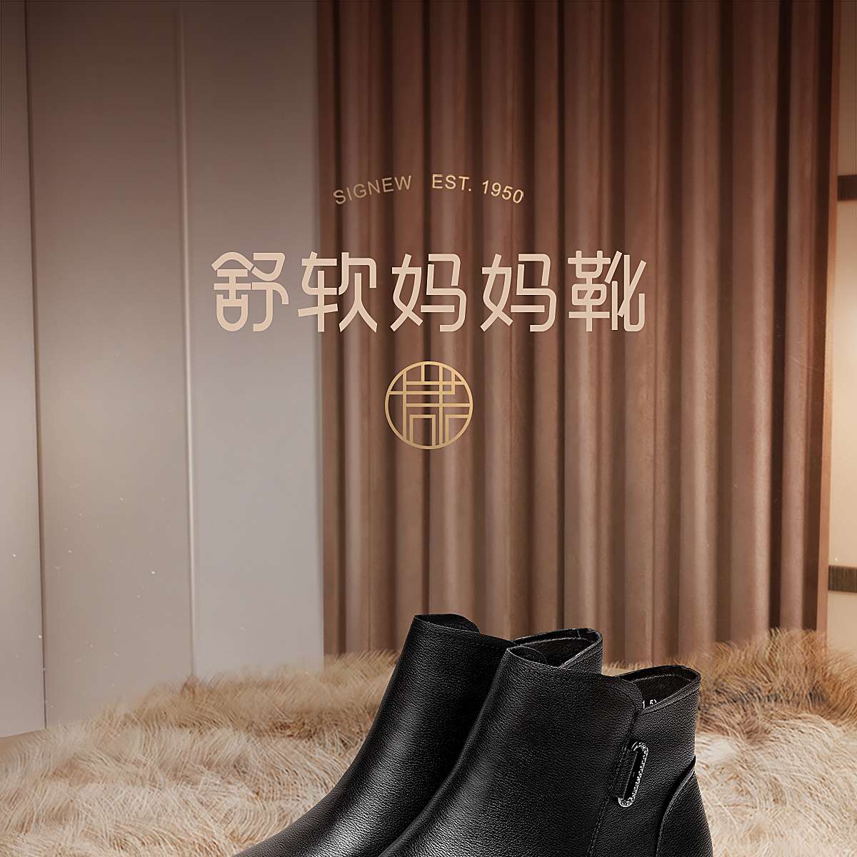 信诺妈妈鞋女真皮软底短靴加绒保暖棉鞋中老年人皮鞋2025冬季新款5M659-8ZY