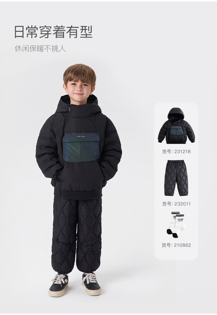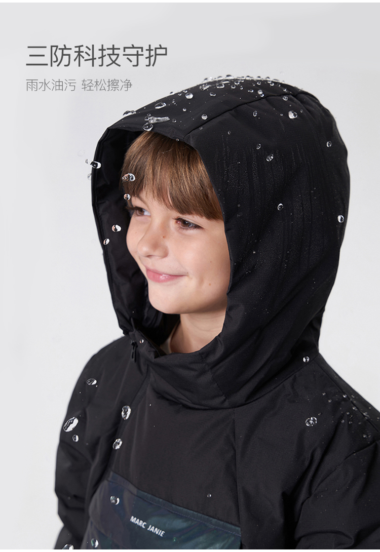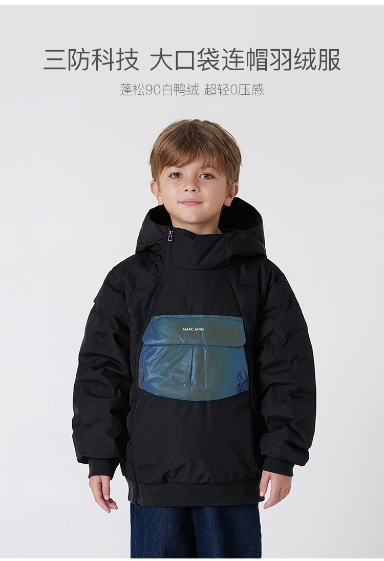 【三防】马克珍妮冬装 男童镭射口袋连帽保暖羽绒服 231218
