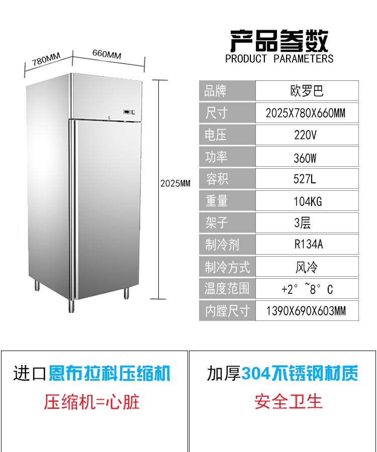 LU-650欧罗巴 不锈钢披萨风冷冷藏柜 发酵柜 面团醒发箱 烤盘柜立式冷柜LU-650